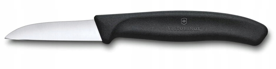 Nóż Victorinox 6.7303 - lekki nóż do obierania i wykrajania warzyw i owoców, z krótkim 6 cm ostrzem. Idealny do obierania ziemniaków i jabłek czy innych, twardych warzyw i owoców. Posiada gładkie ostrze o długości 6 cm oraz wygodną rączkę z polipropylenu. Nóż można myć w zmywarce.