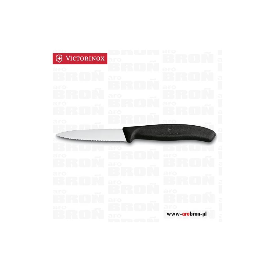 Uniwersalny nóż kuchenny z ostrym czubkiem i ząbkowanej krawędzi, do pomidorów, jarzyn VICTORINOX 6.7633 CZARNY BLACK pikutek