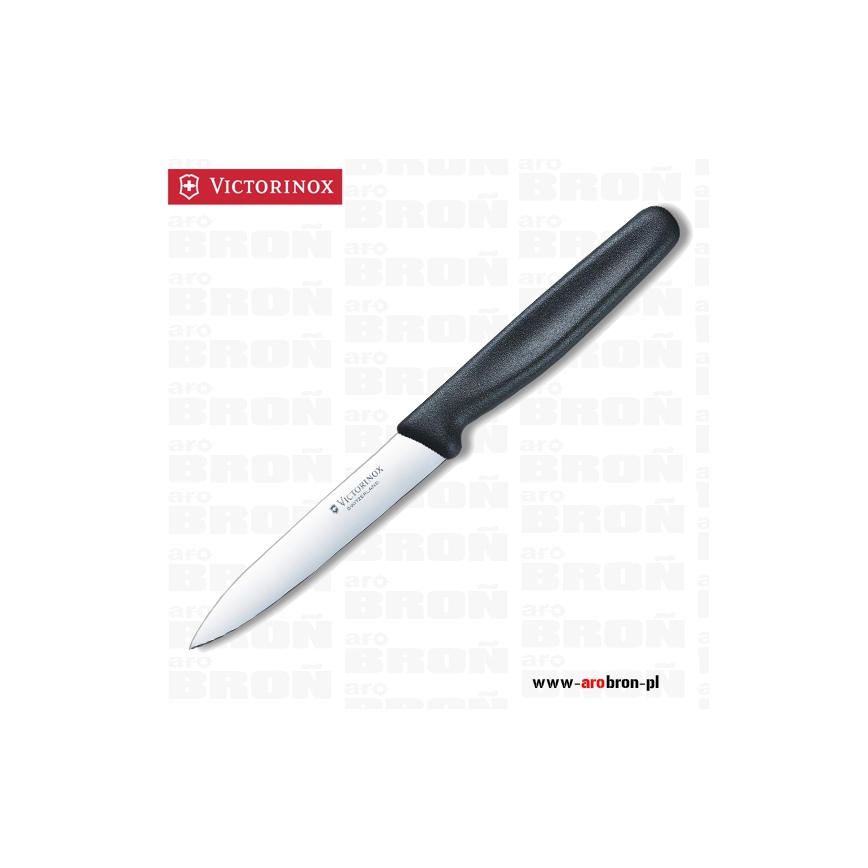 Nóż Victorinox do jarzyn 5.0703 - lekki, uniwersalny nóż do obierania warzyw i owoców z gładkim ostrzem o długości 10 cm. Nóż posiada wygodną rączkę z polipropylenu koloru czarnego. Nóż dedykowany jest do jarzyn, ale bez trudu pokroi również wędliny czy twarde sery.