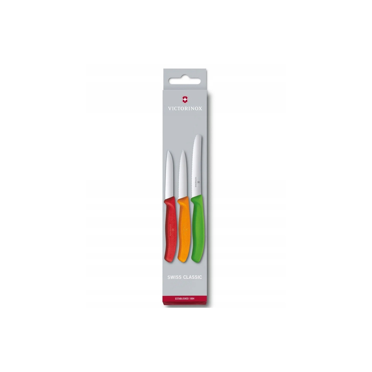 Komplet noży Victorinox 6.7116.32 to noże do warzyw i owoców – niezbędne w każdej kuchni. Ostrze mimo małych rozmiarów cechuje niezwykła praktyczność. Wyciąganie pestek z chili lub krojenie cukinii w kostkę, krojenie plasterków polędwicy lub limonki na przyjęcie – ten nóż kompaktowych rozmiarów poradzi sobie z każdym zadaniem. Trio zawiera noże w trzech rozmiarach (8-11 cm) w trzech kolorach tęczy.