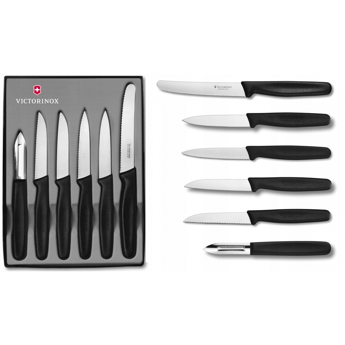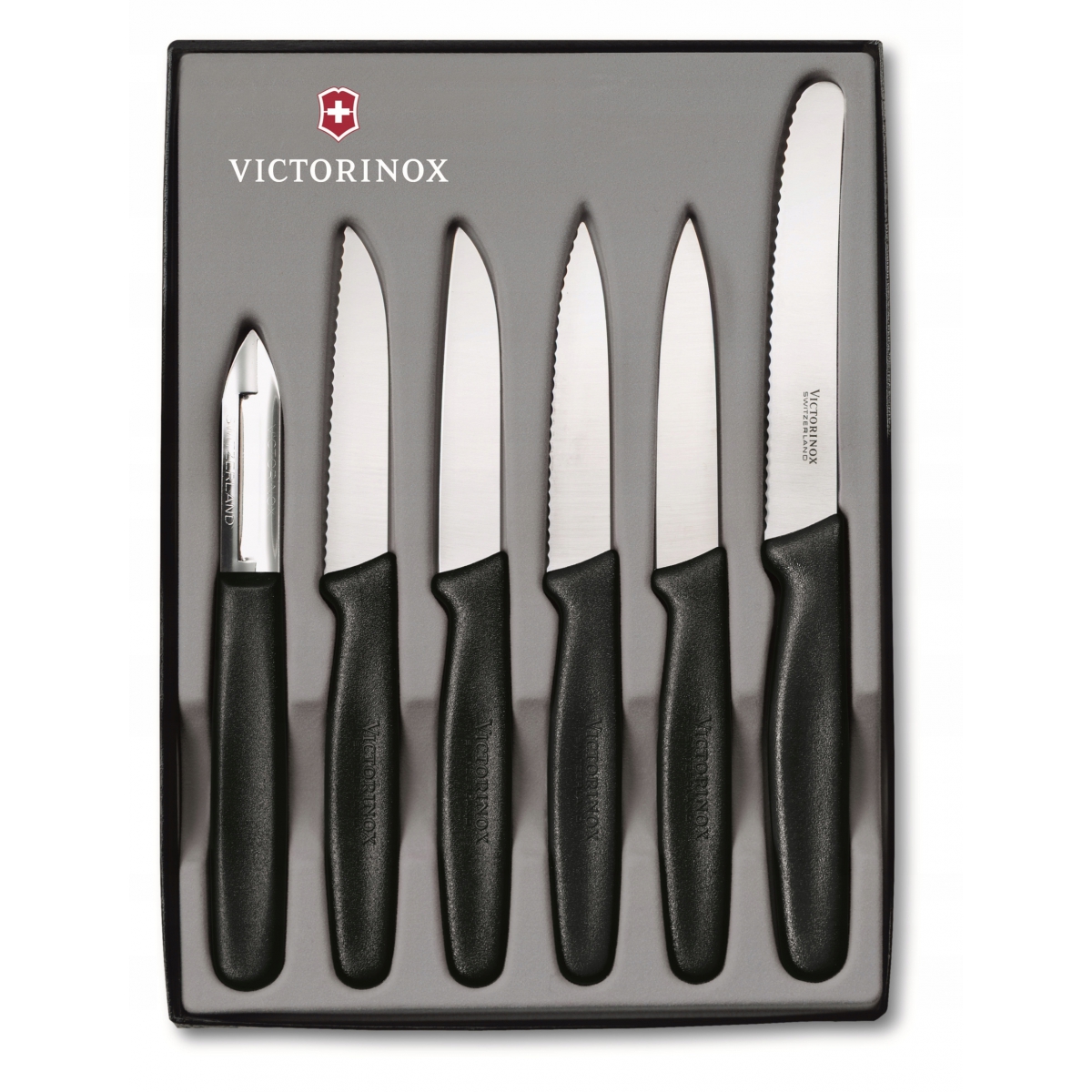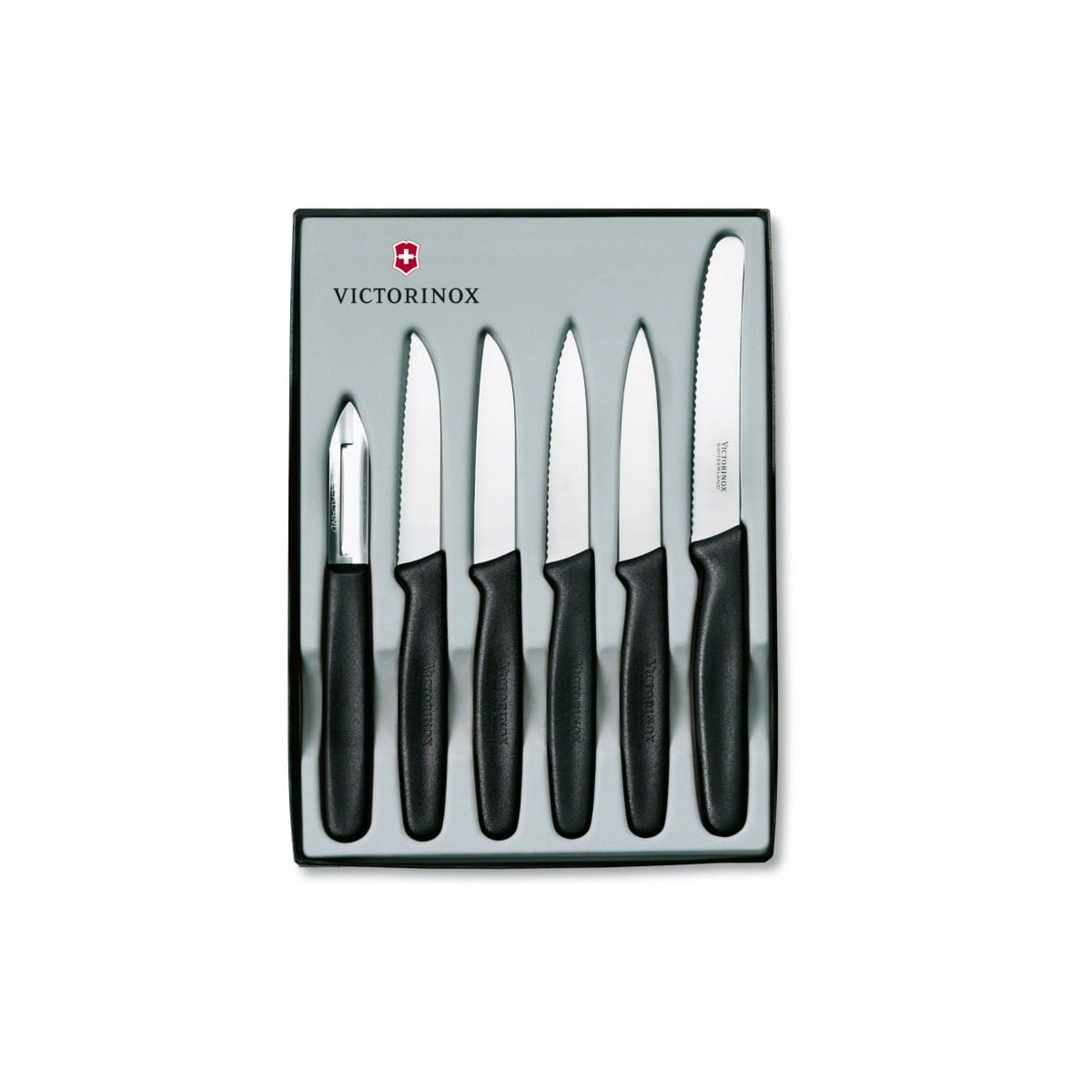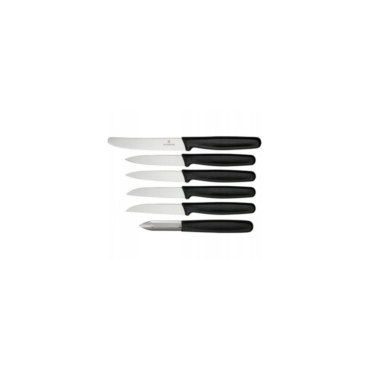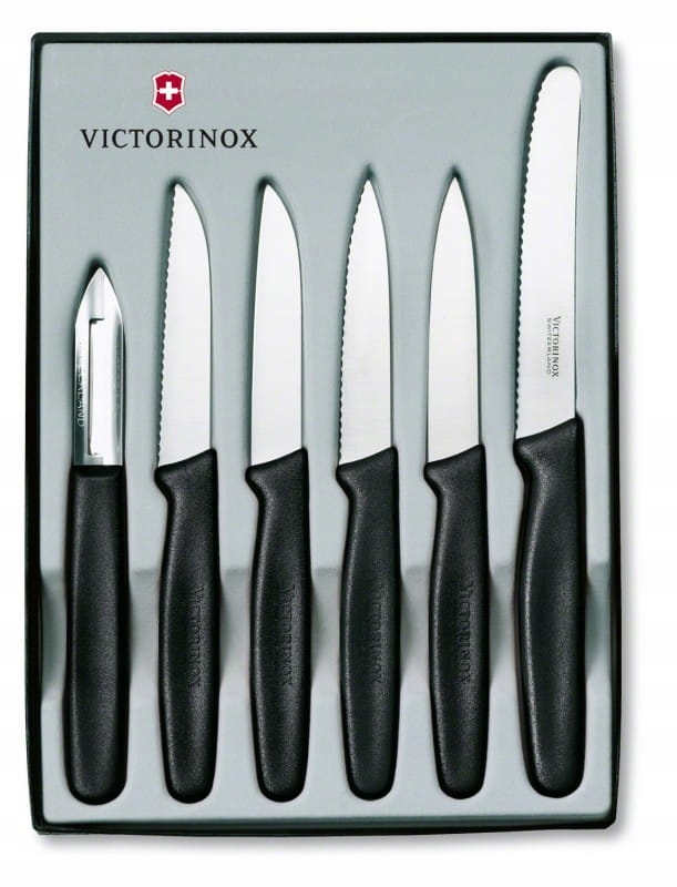 Zestaw Victorinox 5.1113.6 - zestaw 5 noży kuchennych i obieraczki szwajcarskiego producenta Victorinox. Wszystkie noże kuchenne Victorinox są laserowo ostrzone, posiadają ergonomiczną, wyprofilowaną i antypoślizgową rękojeść, wykonaną z wytrzymałego polipropylenu. Komplet narzędzi, które znajdą zastosowanie w każdej kuchni. Polipropylenowa rękojeść we wszystkich narzędziach zapewnia długą żywotność materiału, co więcej, nadaje się do mycia w zmywarce.