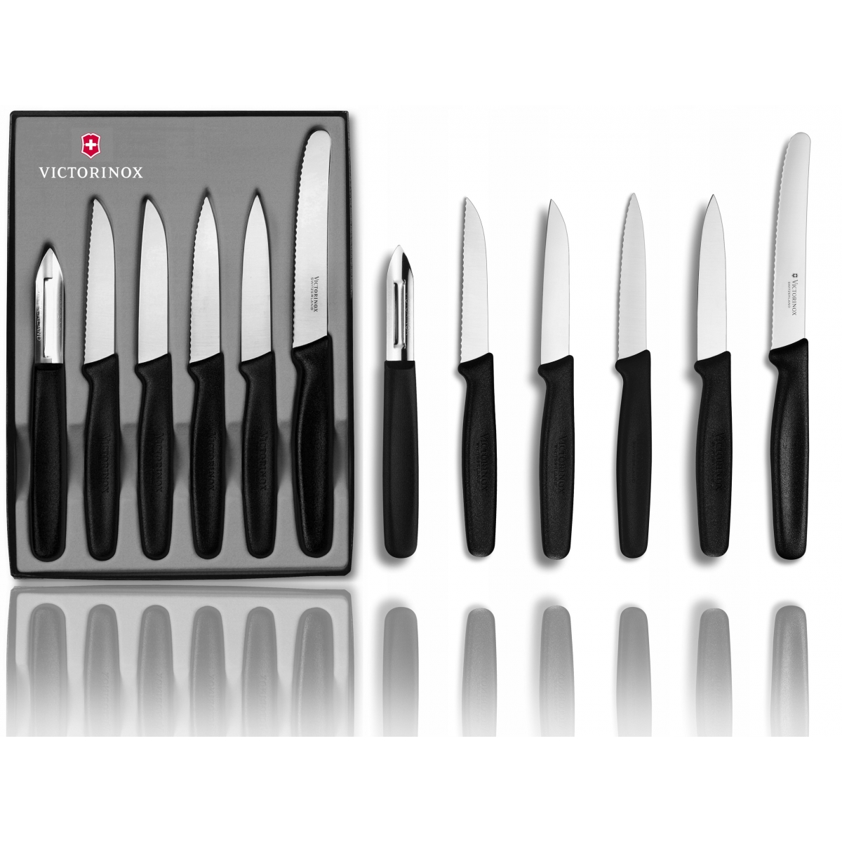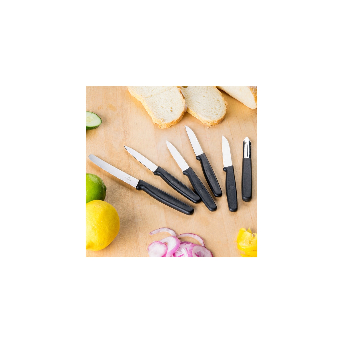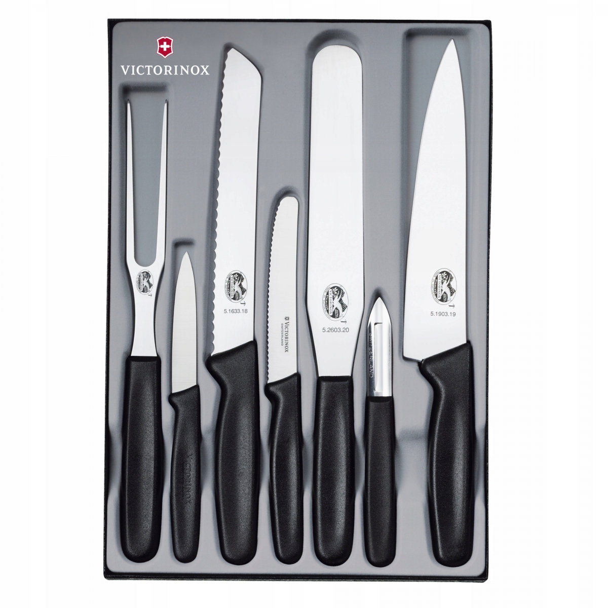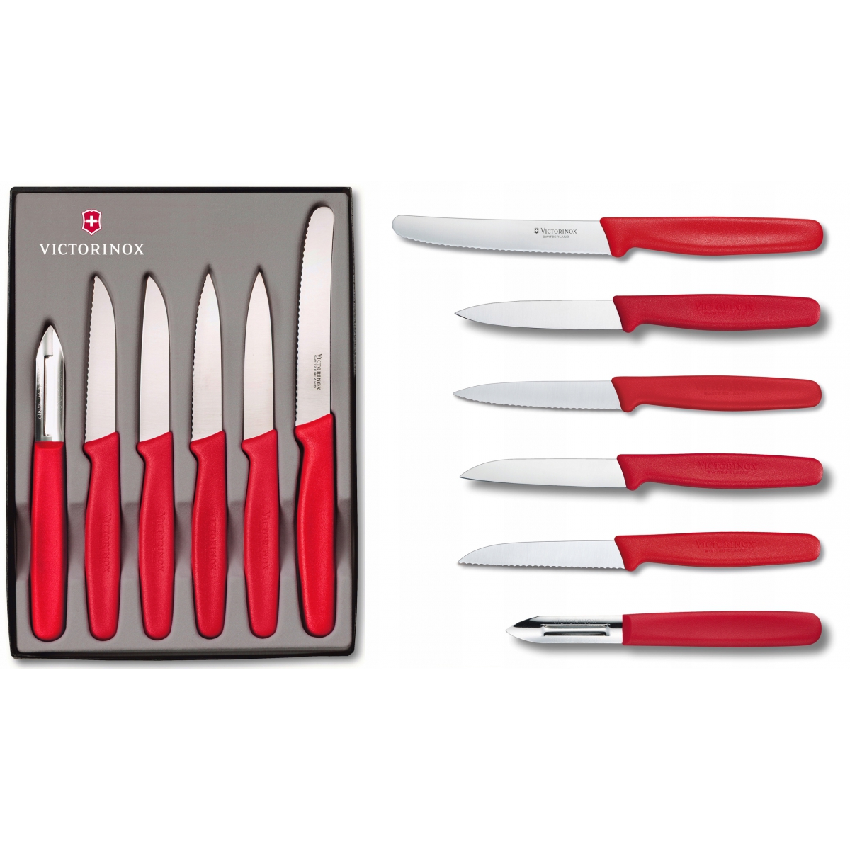 Zestaw Victorinox 5.1113.6 - zestaw 5 noży kuchennych i obieraczki szwajcarskiego producenta Victorinox. Wszystkie noże kuchenne Victorinox są laserowo ostrzone, posiadają ergonomiczną, wyprofilowaną i antypoślizgową rękojeść, wykonaną z wytrzymałego polipropylenu. Komplet narzędzi, które znajdą zastosowanie w każdej kuchni. Polipropylenowa rękojeść we wszystkich narzędziach zapewnia długą żywotność materiału, co więcej, nadaje się do mycia w zmywarce.