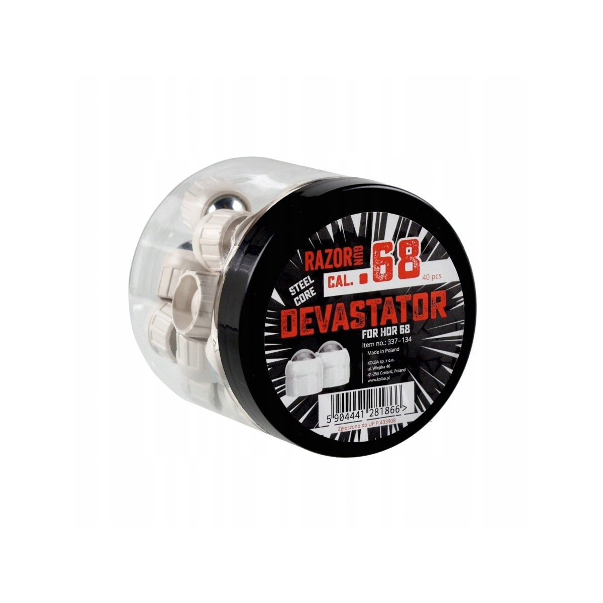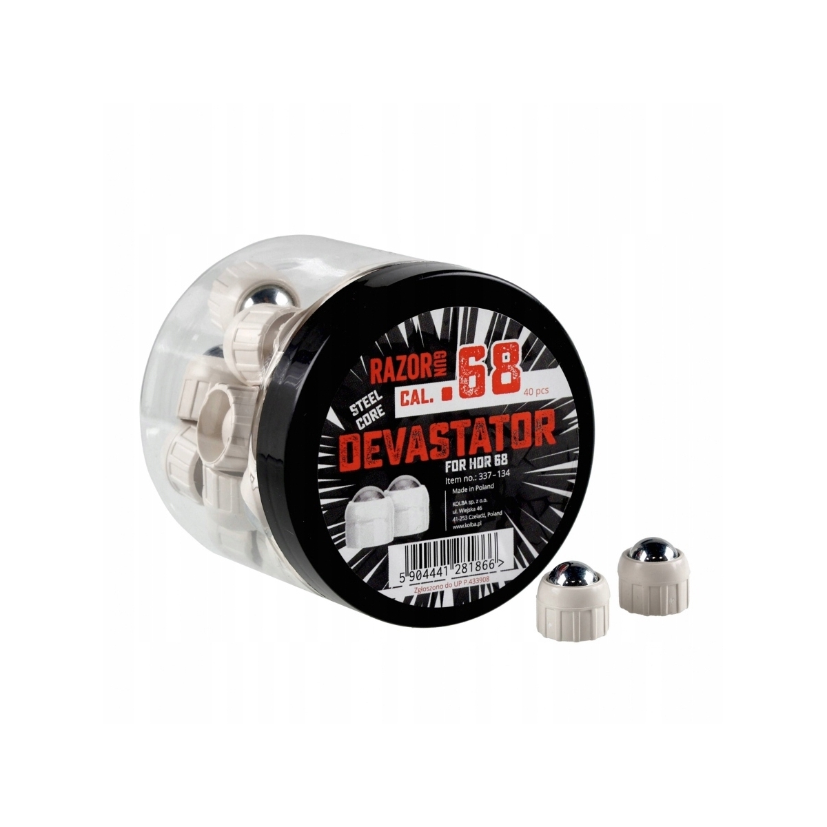 Kule metalowe DEVASTATOR to hybrydowe pociski do strzelby T4E HDS 68, cechujące się doskonałą przebijalnością i zwiększoną mocą obalającą.
