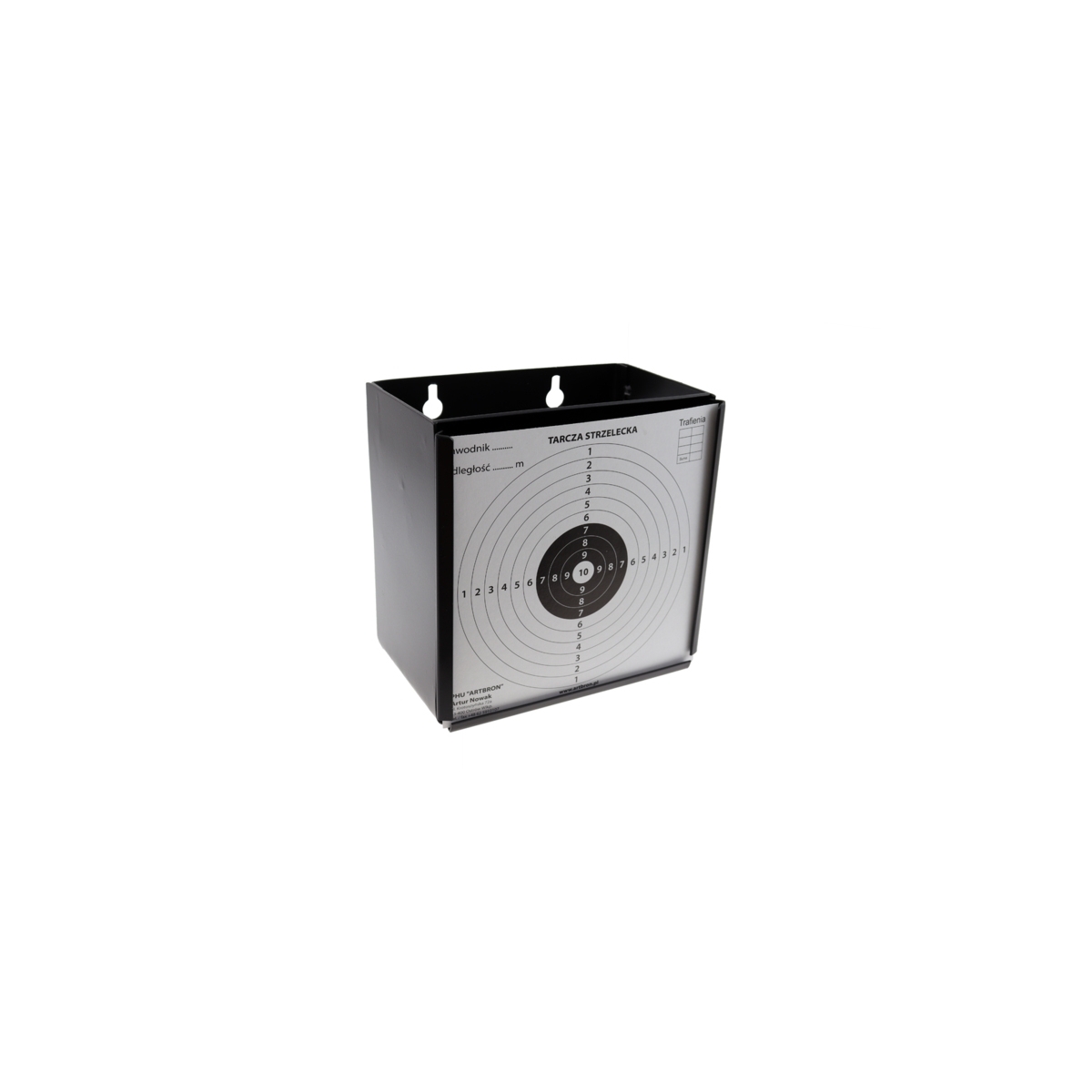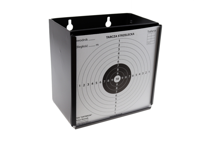 Kulochwyt wzmocniony czarny do tarcz 17x17 - skutecznie zabezpiecza przed rykoszetującym śrutu. Dzięki otworom w tylnej ściance, kulochwyt można w łatwy sposób zawiesić. Jest on tak skonstruowany, aby tarcza nieco wystawała do przodu od góry poza obrys kulochwytu, co ułatwia wyciągnięcia zużytej tarczy. Mocny i gruby kulochwyt z pewnością posłuży przez długie lata. Tylna ścianka wykonana z blachy o grubości 2 mm gwarantuje długą żywotność i wytrzymałość.