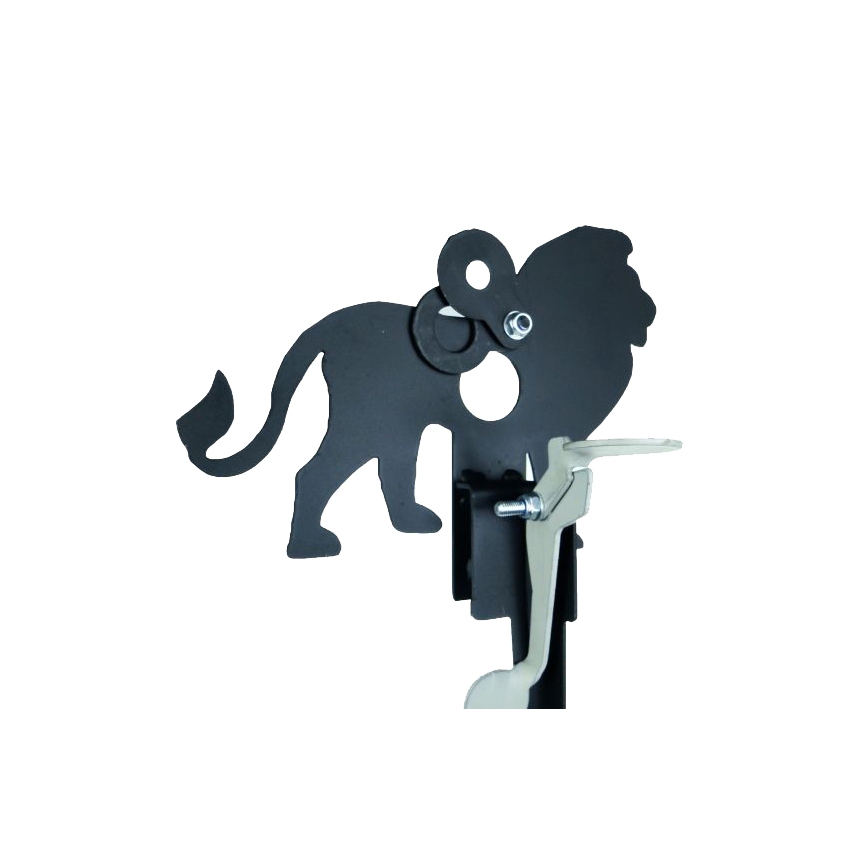 Figurka FT LEW- strzelnica podobiznowa "lew" wykonana z grubej blachy, skonstruowana w dogodny sposób tak, aby nie podchodzić do strzelnicy po każdym strzale. By ją postawić wystarczy tylko strzelić w lizak znajdujący się poniżej. Figurka ma również regulację otworów zgodnie z umiejętnościami strzeleckimi.
