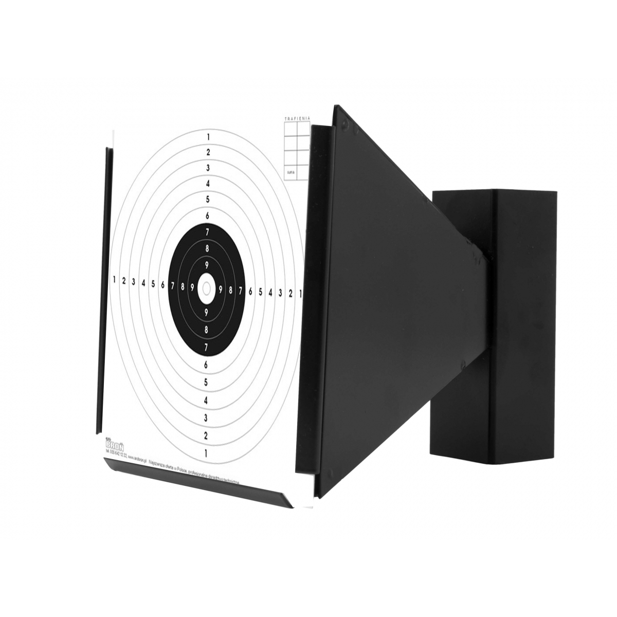 Kulochwyt stożkowy 14x14 cm - zatrzymuje śruty w środku, chroni przed rykoszetami. Można go powiesić lub postawić. Przeznaczony do standardowych tarcz strzeleckich o wymiarach 14x14 cm.