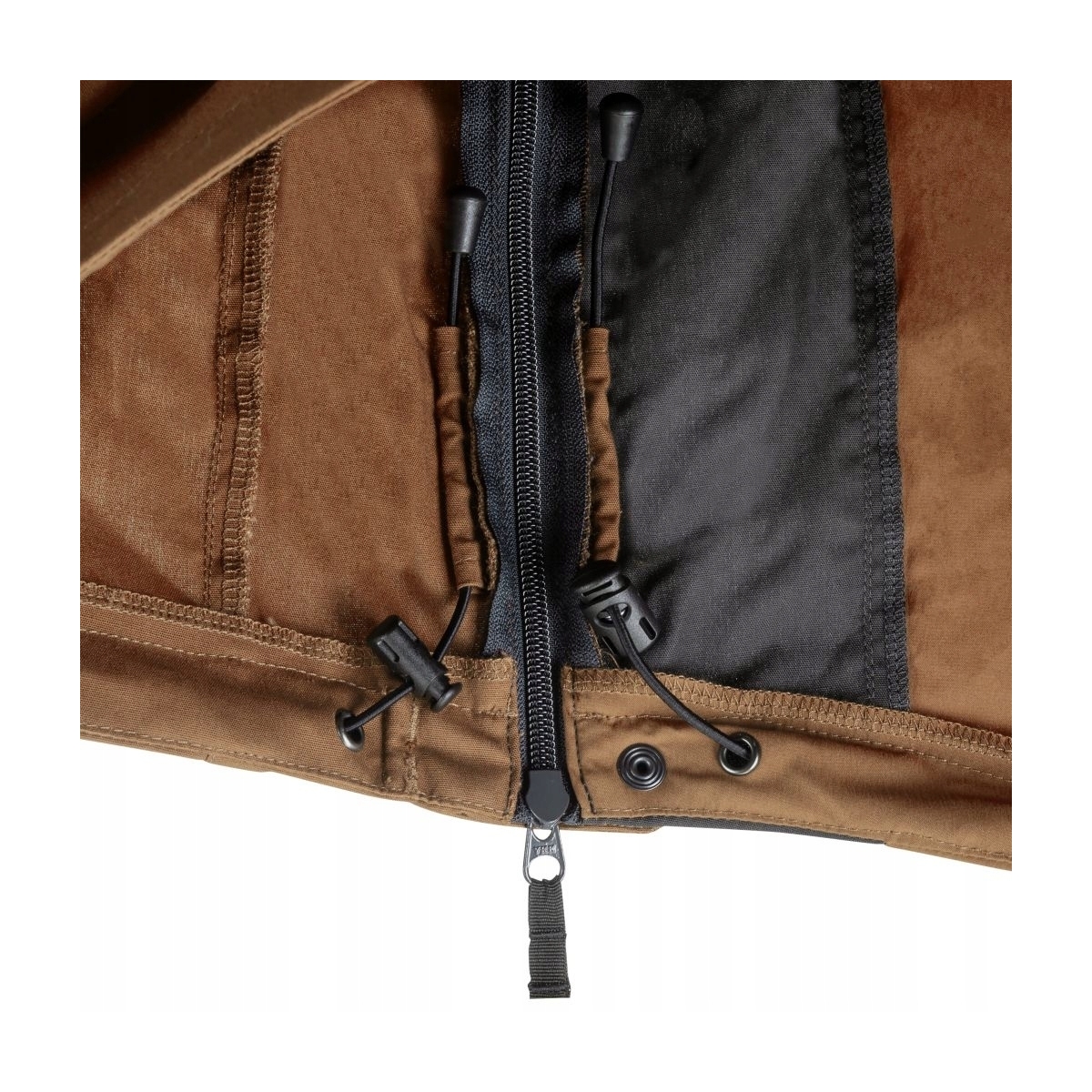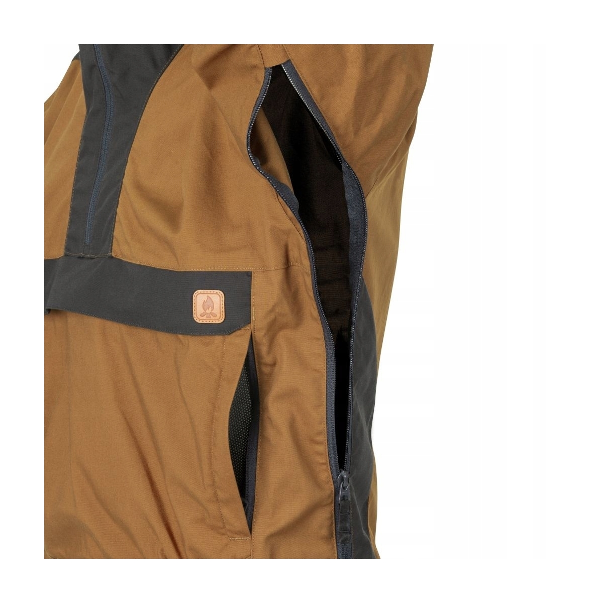 Kurtka Helikon Anorak Woodsman Taiga - to outdoorowa odsłona kurtki typu anorak, która została wykonana z użyciem materiału DuraCanvas na jej przodzie, aby poprawić odporność na iskry oraz zapewnić odpowiednią wytrzymałość. Tył kurtki wykonano z elastycznej tkaniny softshellowej StormStretch, której zaletą jest lepsza oddychalność oraz swoboda ruchów. Całość projektu cechuje oddychalność i wiatroszczelność. Kurtka polecana do warunków outdooru oraz campingu.