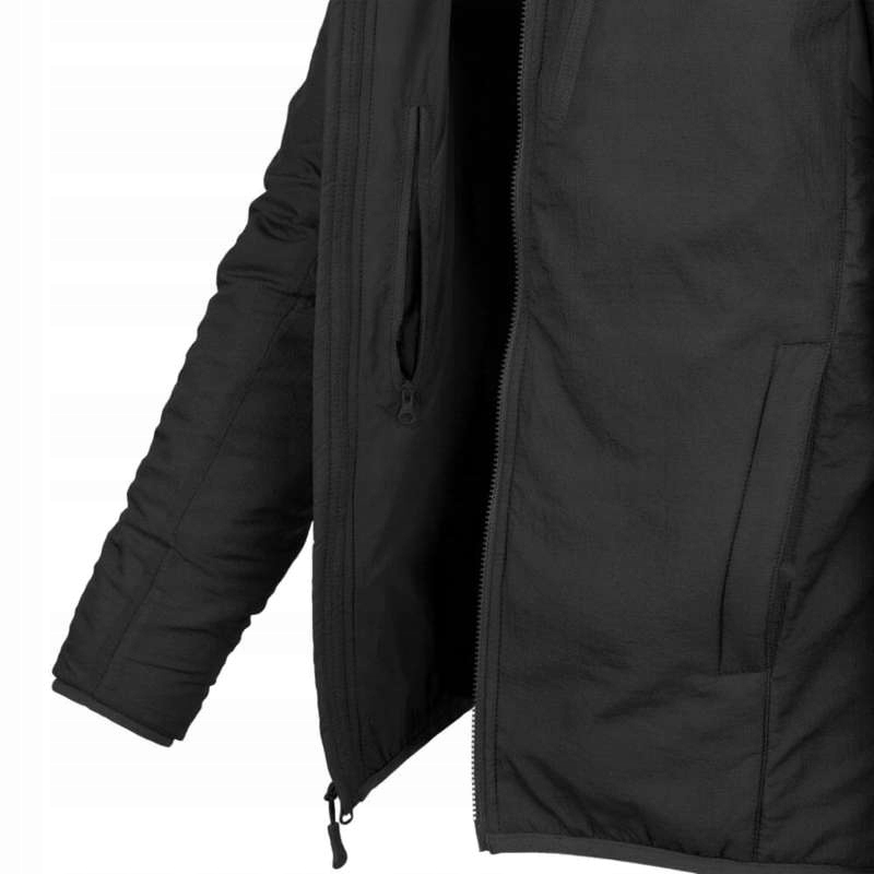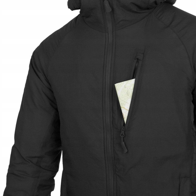 Lekka kurtka z kapturem marki Helikon. Skutecznie zabezpiecza przed chłodem, wiatrem oraz lekkim deszczem. Wyposażono ją w cztery praktyczne kieszenie: dwie klasyczne biodrowe, jedną zewnętrzną na piersi oraz jedną kieszeń wewnętrzną. Wszystkie kieszenie zapinane są solidnymi zamkami YKK.