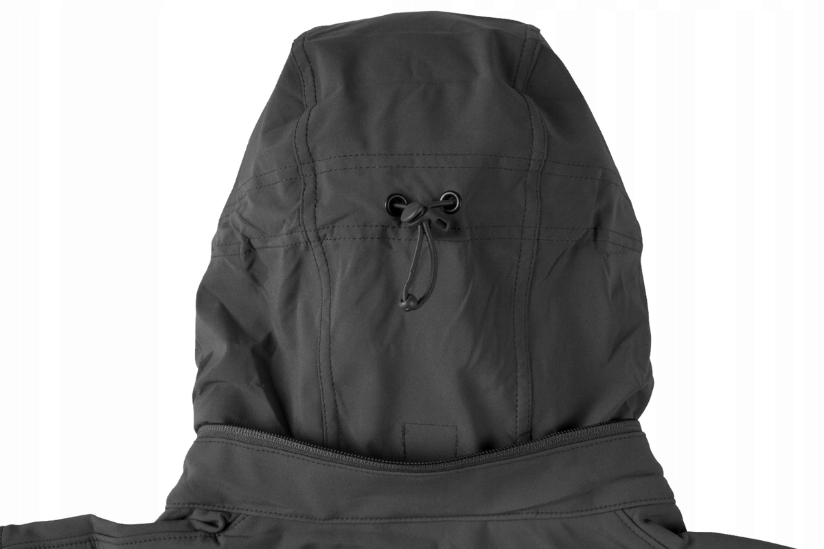 Kurtka posiada obszerny kaptur schowany w kołnierzu. Można go regulować bez potrzeby wyciągania rąk z kieszeni, za pomocą ściągaczy ukrytych w kieszeniach na piersi.