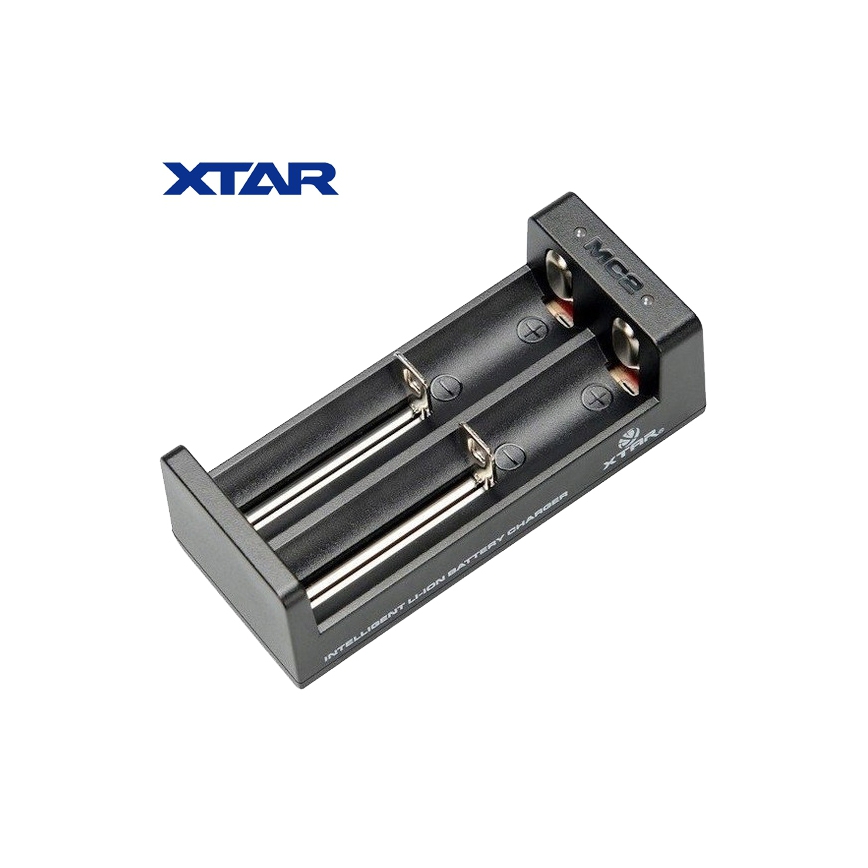Ładowarka XTAR MC2 - uniwersalna, dwukanałowa, kompaktowa ładowarka procesorowa ładowarka firmy XTAR przeznaczona do akumulatorów litowych i litowo-jonowych typu: RCR123A, 18650, 17670, 14500 o natężeniu 3,6 i 3,7V. Sterowany procesorem trzystopniowy proces ładowania TC/CC/CV, który używa innego natężenia ładowania w zależności od stopnia naładowania ogniwa, posiada także funkcję reaktywacji ogniw głęboko rozładowanych i ogniw o napięciu 0V.