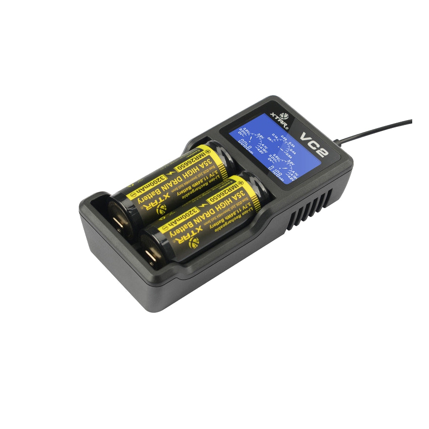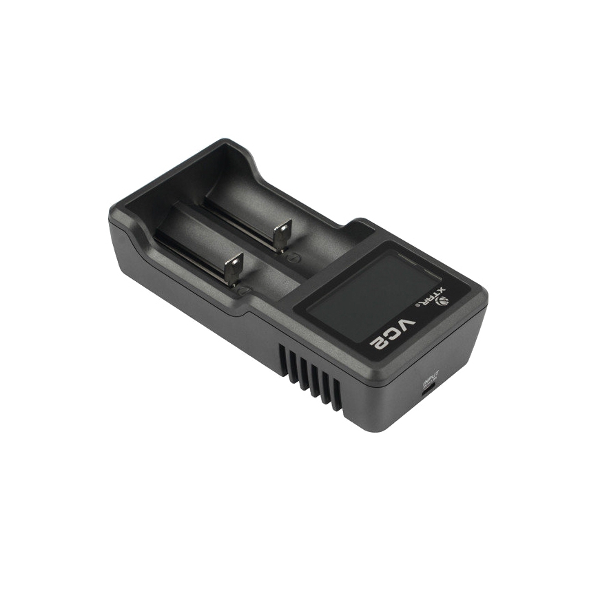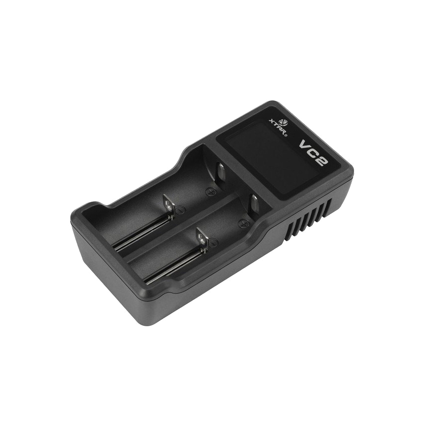 Ładowarka XTAR VC2 to uniwersalna, dwukanałowa, kompaktowa, procesorowa przeznaczona do akumulatorów litowych i litowo-jonowych typu: 14500, 14650, 16340, 17500,17670, 18350, 18500, 18650, 18700, 20700, 21700, 22650, 25500, 26650. Sterowana procesorem posiada trzystopniowy proces ładowania TC/CC/CV, który używa innego natężenia ładowania w zależności od stopnia naładowania ogniwa, posiada także funkcję reaktywacji ogniw głęboko rozładowanych i ogniw o napięciu 0V. Ładowarka posiada szereg zabezpieczeń: termiczne, zwarciowe, przed odwrotnym włożeniem akumulatora, może jednocześnie ładować jedno lub dwa ogniwa. Wyświetlacz LCD wskazuje napięcie ładowanych akumulatorów, prąd ładowania, ładunek wykorzystany do naładowania ogniw oraz wskazuje ew. błędy i informuje zakończeniu ładowania.