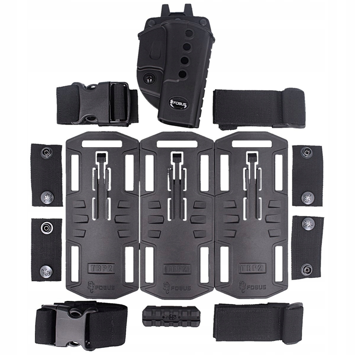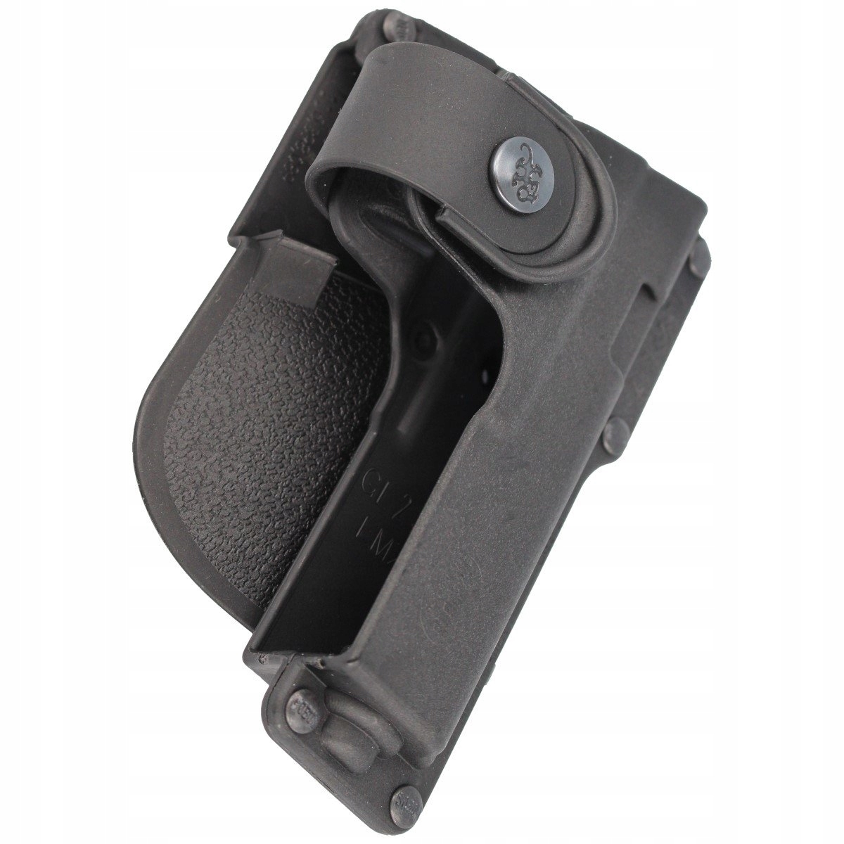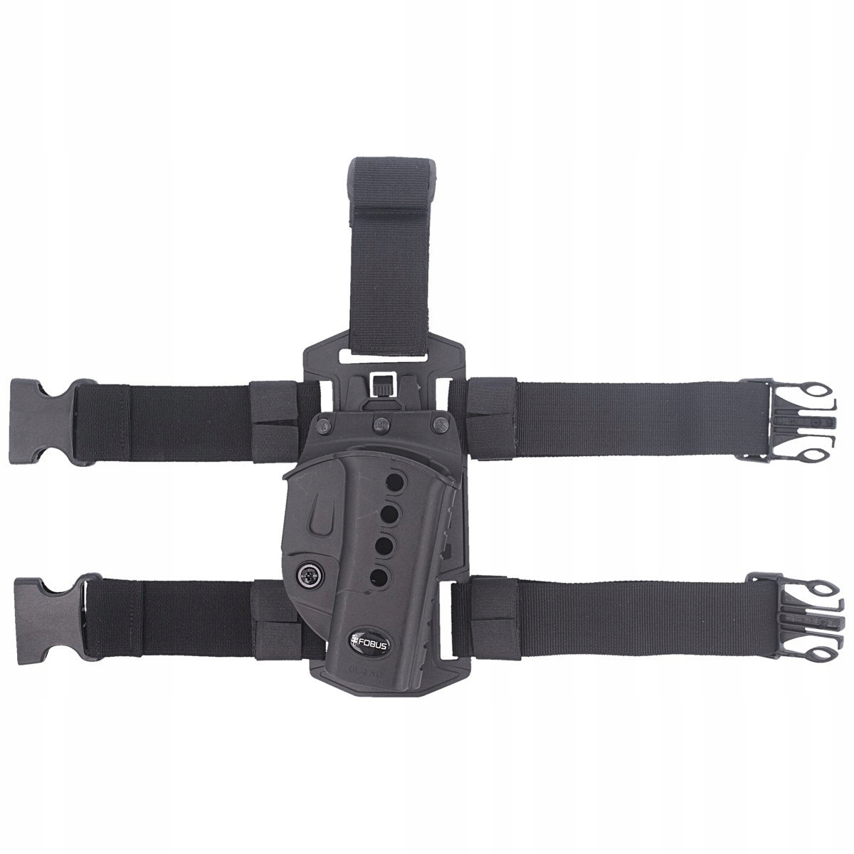 Wersja ze stałym kątem. Aukcja dotyczy samej kabury i panelu udowego (pistolet z oświetleniem taktycznym nie jest w komplecie).