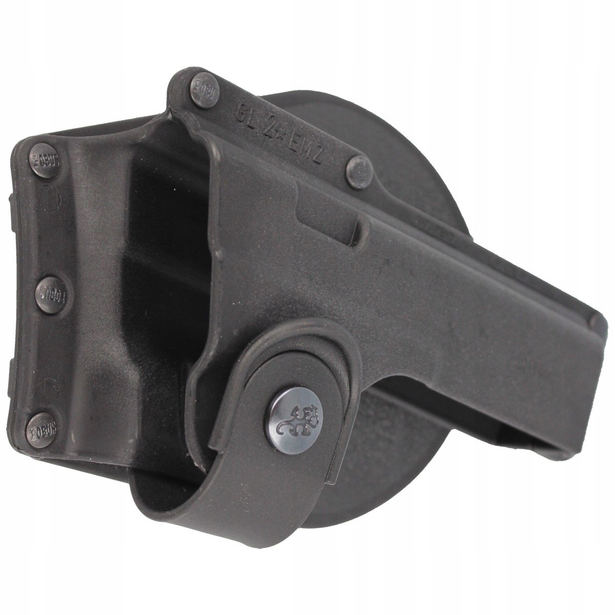 Kabura FOBUS EM19 + Panel Udowy 3xQL - profesjonalna kabura izraelskiego producenta Fobus przeznaczona pod broń z zamontowanym oświetleniem lub laserem. Pasuje do pistoletów Glock 19, 23, 32 (również Gen.6), Walther P99, Smith & Wesson: M&P Compact, Ruger: SR9, SR40.