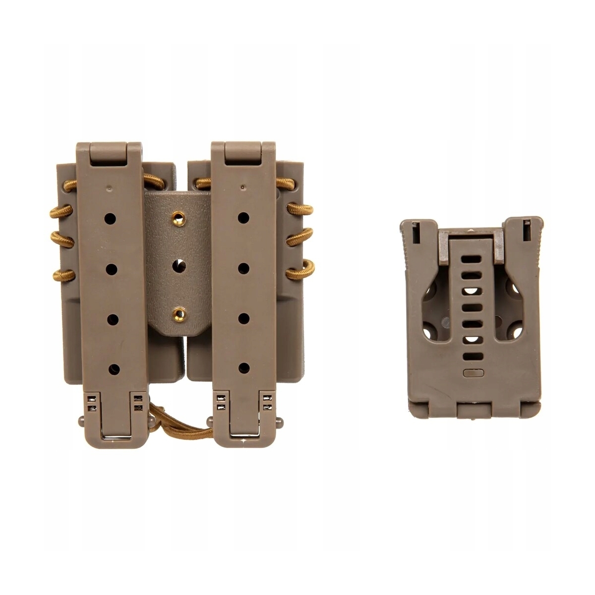 Ładownica typu fast na 2 magazynki pistoletowe 9 mm wykonana z lekkiego, a zarazem wytrzymałego tworzywa sztucznego.