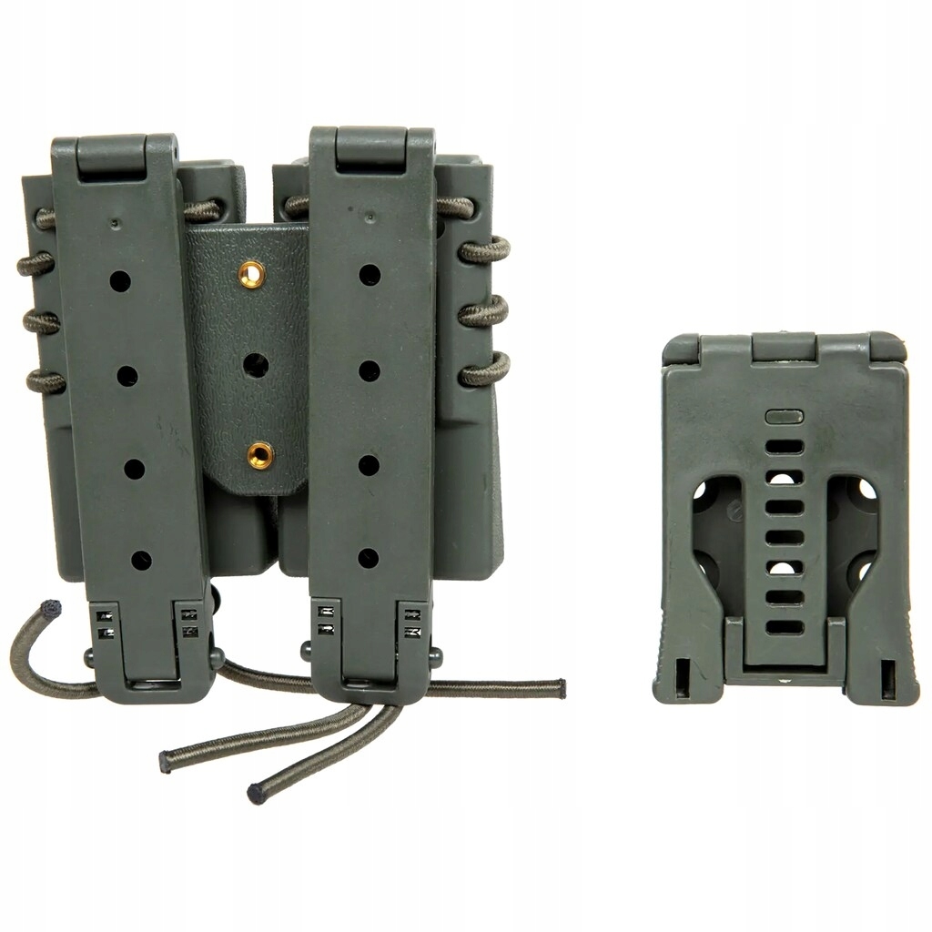 Ładownica typu fast na 2 magazynki pistoletowe 9 mm wykonana z lekkiego, a zarazem wytrzymałego tworzywa sztucznego.
