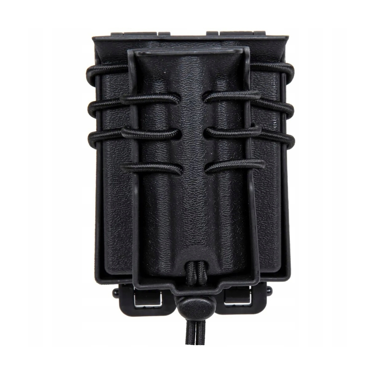 Konstrukcja gwarantuje szybkie dobycie magazynka oraz zapewnia jego pewne trzymanie. Siłę retencji pozwala regulować elastyczna linka shockcord ze stoperem.