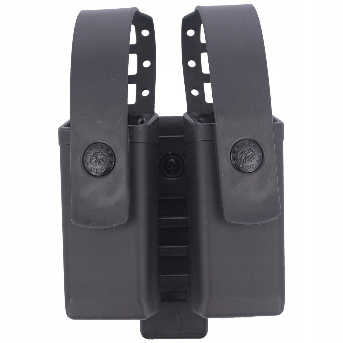 Ładownica ESP na dwa dwurzędowe magazynki pistoletowe w kal. 9mm Luger/ .40 z mocowaniem UBC-02. Kabura wyposażona w wewnętrzne sprężyny utrzymujące magazynki w kaburze, co zapewnia bardzo szybkie ich wyciągnięcie. Kabura wyposażona w metalowe zapięcia zaprojektowane w taki sposób by, umożliwić otwarcie ładownicy nawet w grubych rękawicach.