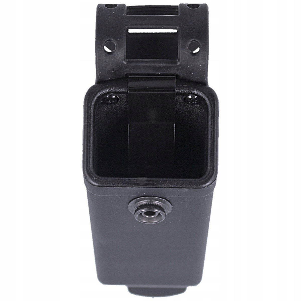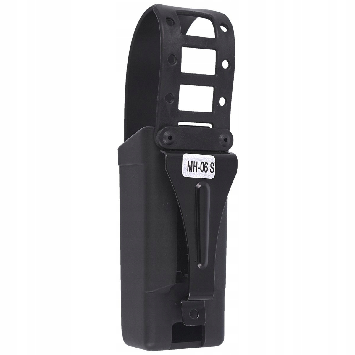 Metalowy klips z tyłu kabury zapewnia szybkie przypięcie lub wypięcie z pasa. Jest kompatybilny z standardem MOLLE co umożliwia przymocowanie do kamizelki lub plecaka posiadającego taśmy w tym standardzie.