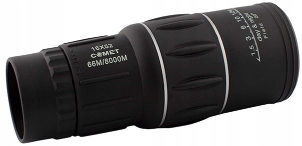 Monokular COMET 16x52 - przeznaczony dla turystów oraz osób, które potrzebują niewielkiej optyki o dobrej jakości obrazu. Posiada stałe powiększenie 16x przy średnicy okularu 52 mm.
