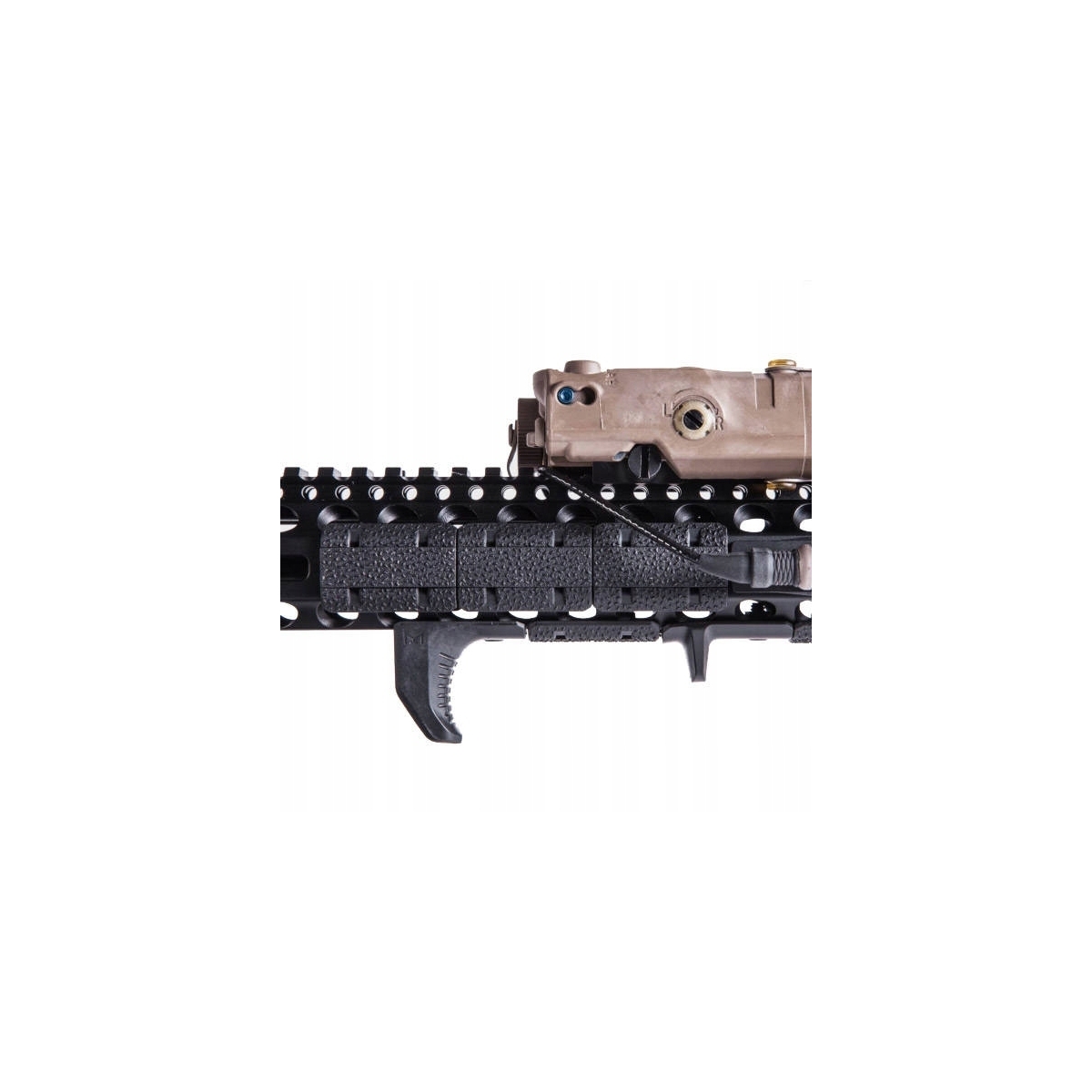 Antypoślizgowa faktura TSP gwarantuje pewny chwyt. Dwuczęściowa budowa pozwala na montaż sekcji w osłonach o innym kolorze dla osiągnięcia customowego wyglądu broni.