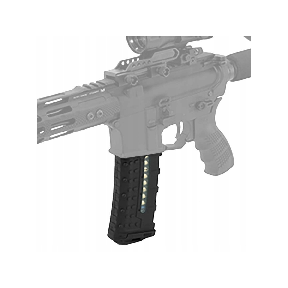 Lekki i wytrzymały magazynek z okienkiem o pojemności 30 naboi do AR15. Posiada korpus wykonany z trwałego polimeru wzmacnianego włóknem szklanym. Konstrukcja magazynka jest odporna na upadek, niekorzystne warunki atmosferyczne oraz zużycie.