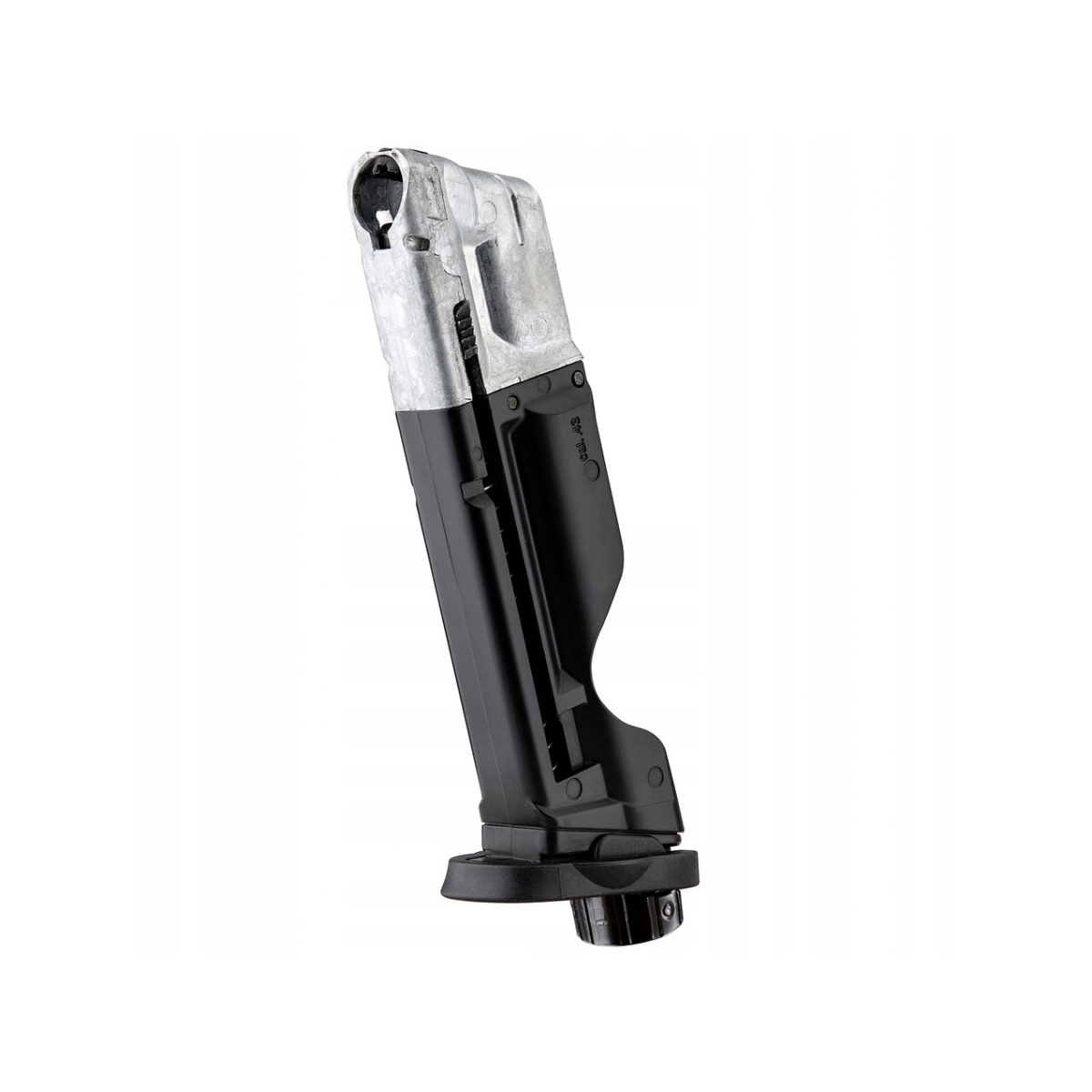 Magazynek Do Pistoletu RAM - to dodatkowy magazynek RAM wyposażony w mechanizm szybkiego przebijania kapsuły. Korpus jest metalowy, stopka oraz blokowany podajnik kul - polimerowe. Wewnątrz magazynka mieści się przedział na kapsułę CO2. W dolnej części znajduje się powiększony przycisk służący do szybkiego przebicia kapsuły zamontowanej w magazynku. Gaz CO2 uwalnia się dopiero po mocnym wciśnięciu wystającego trzpienia. Dzięki temu w magazynku można bezpieczenie przenosić nieprzebitą kapsułę i w razie zagrożenia błyskawicznie przygotować do działania.
