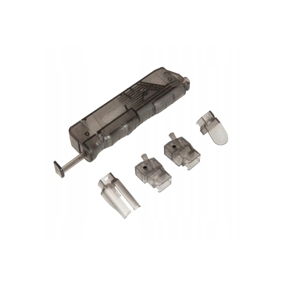 Zestaw zawiera cztery adaptery ułatwiającą ładowanie magazynków modeli pistoletów wiatrówkowych C11, CZ, STI i innych magazynków podobnych konstrukcyjnie.