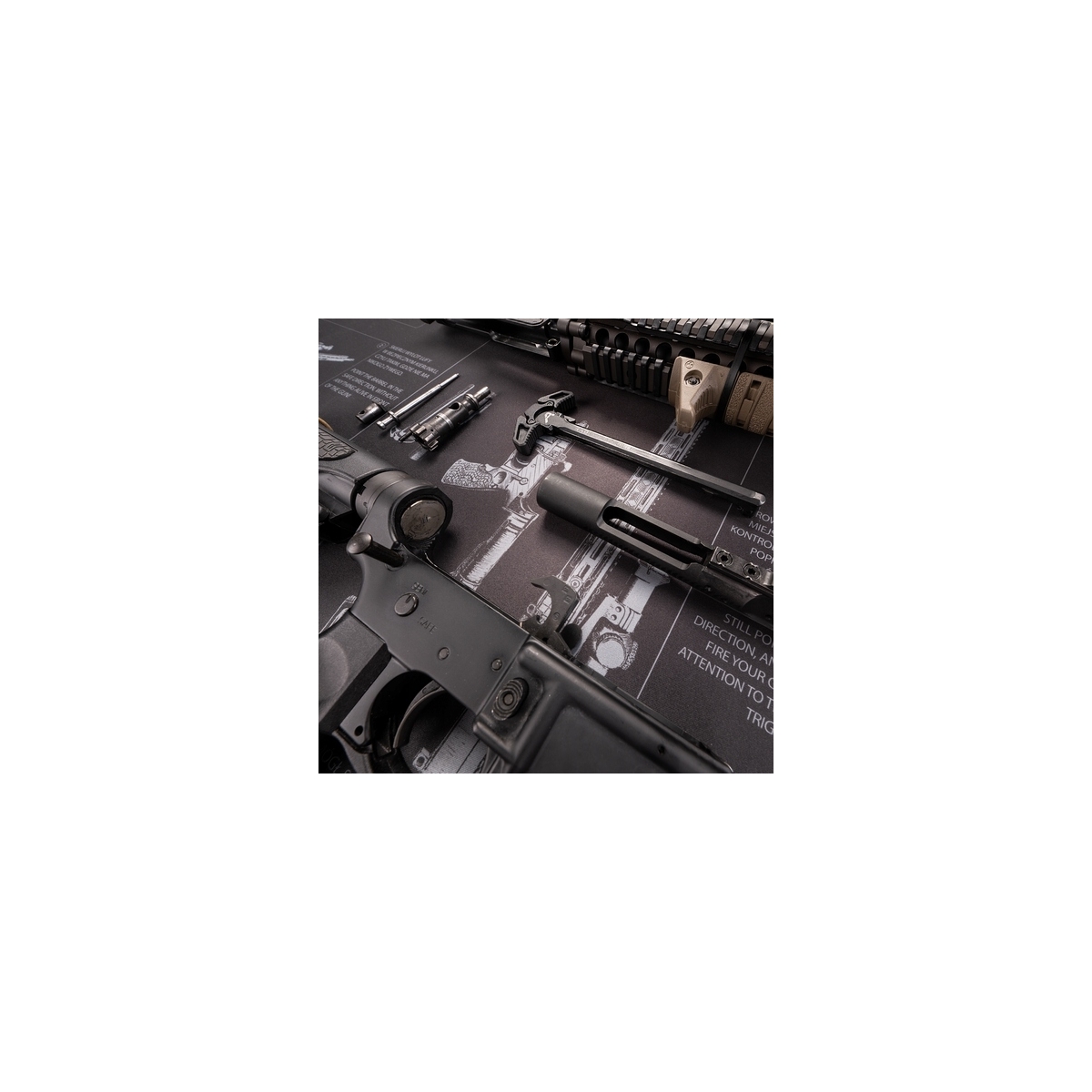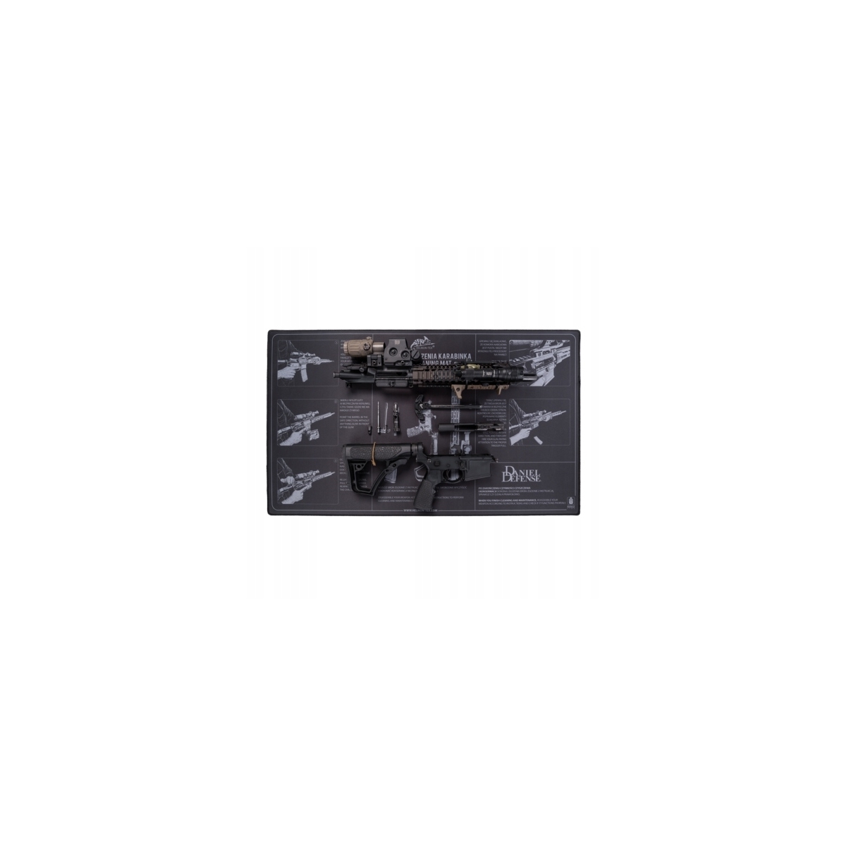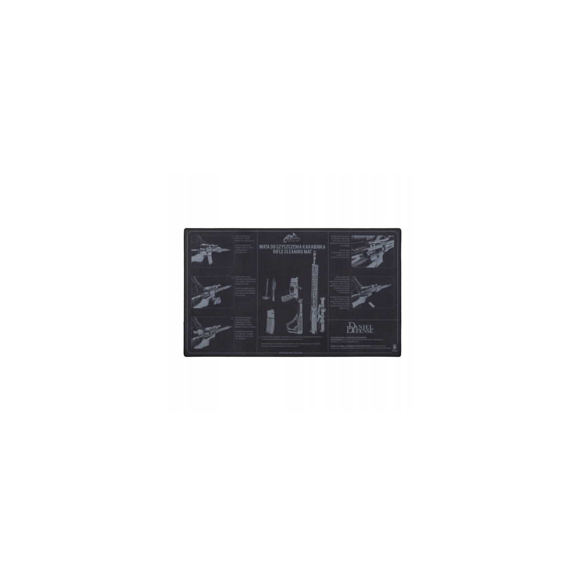 Mata Helikon do czyszczenia karabinów - praktyczna przestrzeń do czyszczenia, konserwacji i napraw broni. Antypoślizgowy spód i miękki materiał utrzymają sprzęt pewnie i bezpiecznie nawet na śliskich blatach, chroniąc zarówno delikatne elementy jak i powierzchnię, a nadruk przy każdym użyciu przypomni bezpieczną procedurę czyszczenia.