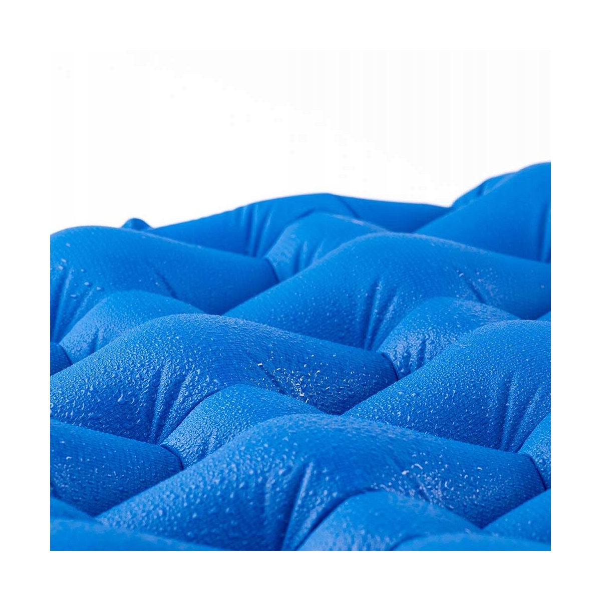Materac wykonany jest z trwałej tkaniny TPU Nylon, która jest odporna na wilgoć. Tworzy ona sieć komór powietrznych Air-Cell, odpowiedzialne są za komfort leżenia na materacu i dobre izolowanie od podłoża. Dodatkowym atutem jest zastosowanie podklejanych szwów co powoduje lepsze uszczelnienie.