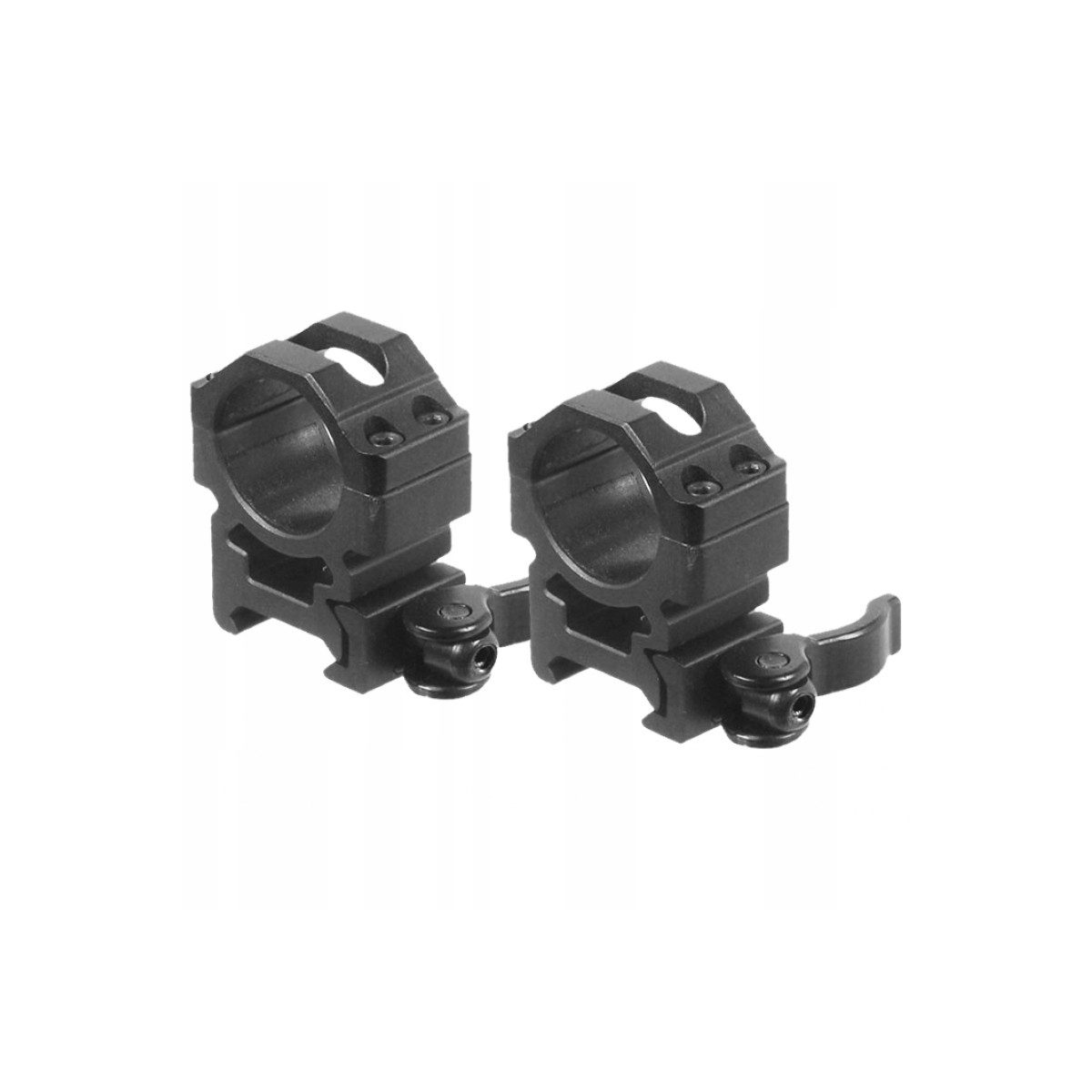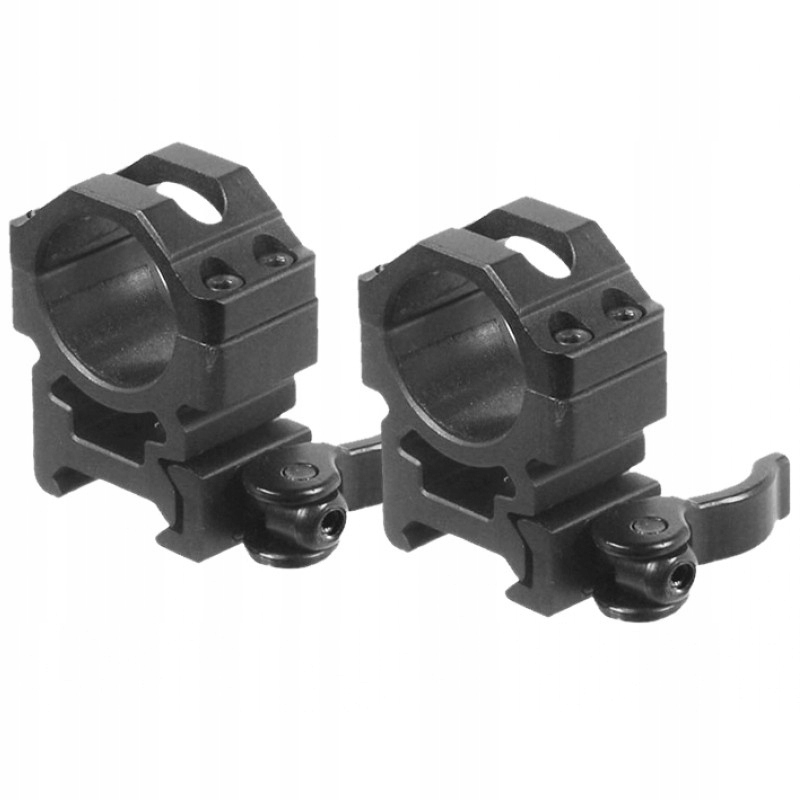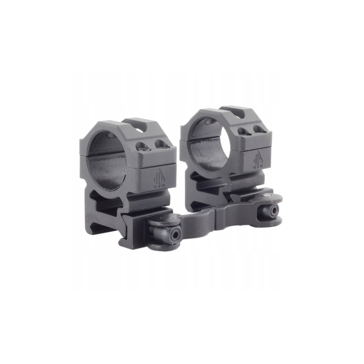 Montaż dwucześciowy średni 1''/weaver amerykańskiej firmy Leapers z serii UTG wykonany z bardzo twardych a zarazem lekkich lotniczych stopów aluminium. Maksymalny rozmiar okularu lunety dla tego montażu to 55 mm. Montaż został wyposażony w system szybkiego montażu i demontażu
