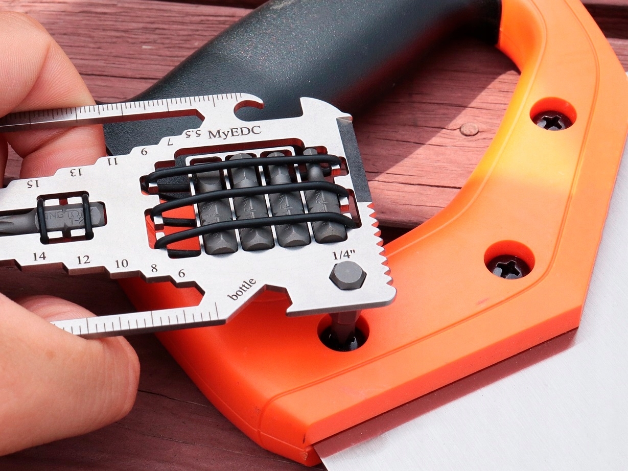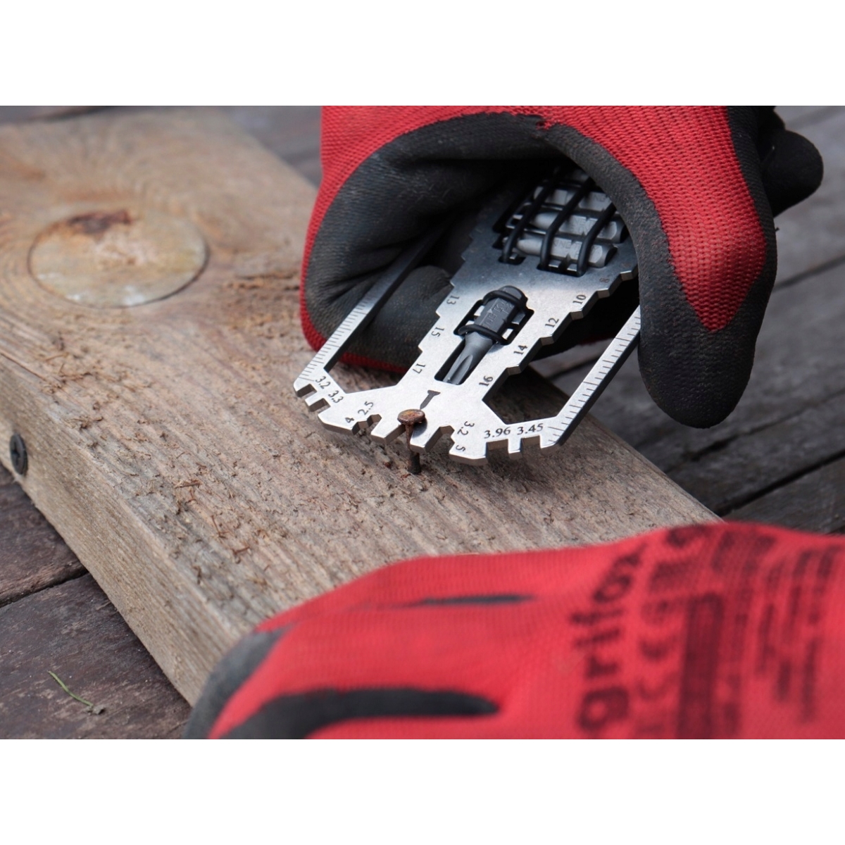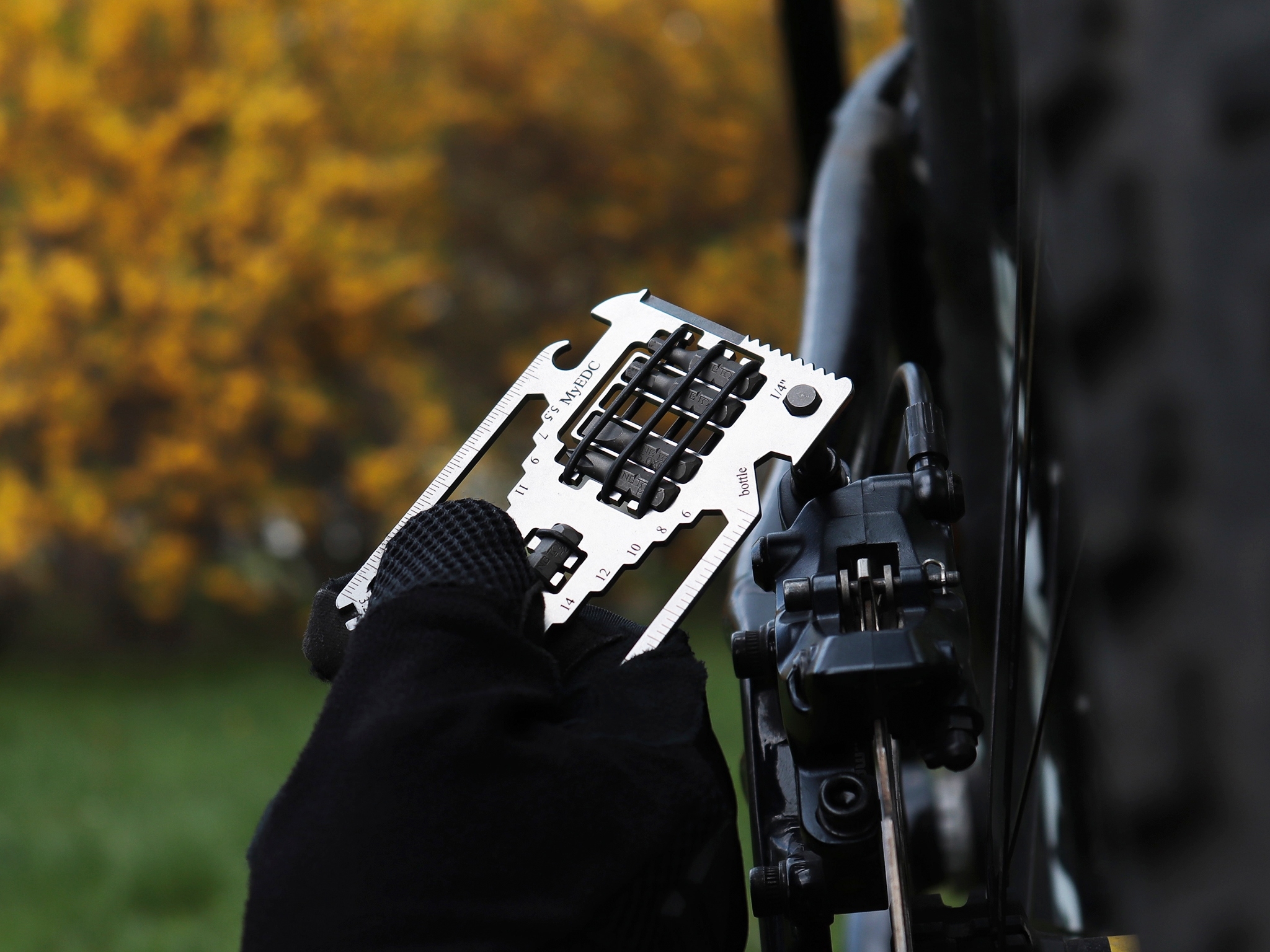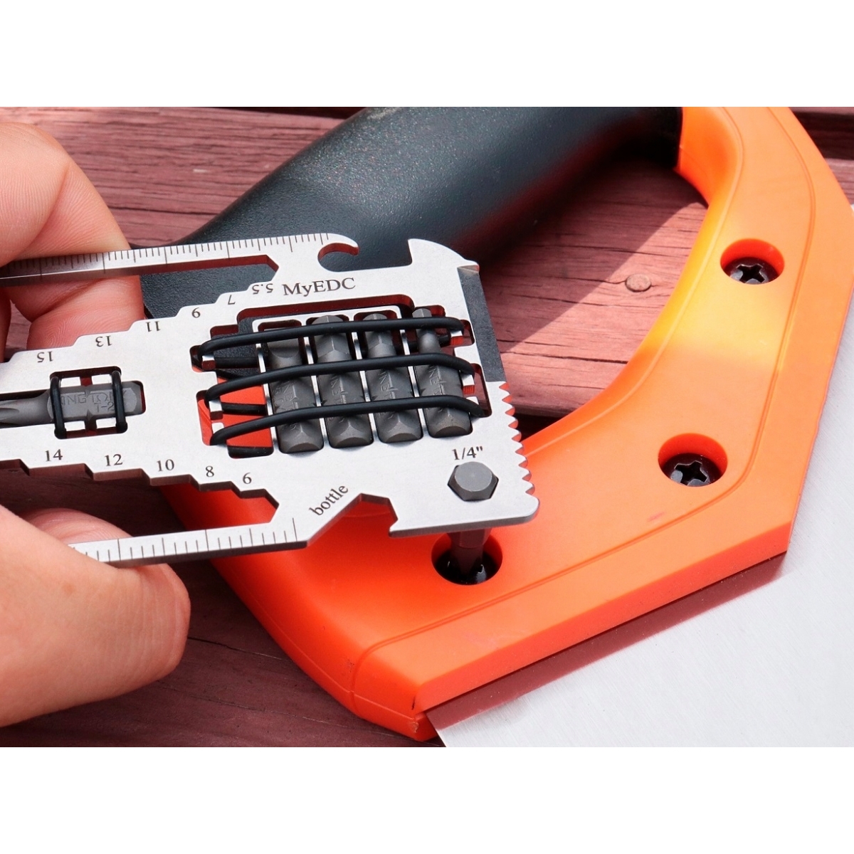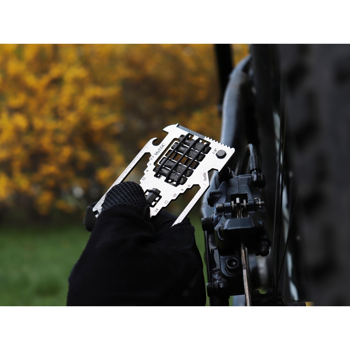 Multitool KARTA SURVIVALOWA - przydatne narzędzie, które dzięki wymiarom karty kredytowej można zawsze mieć przy sobie w portfelu. Zawiera 29 różnych narzędzi z 6 bitami.