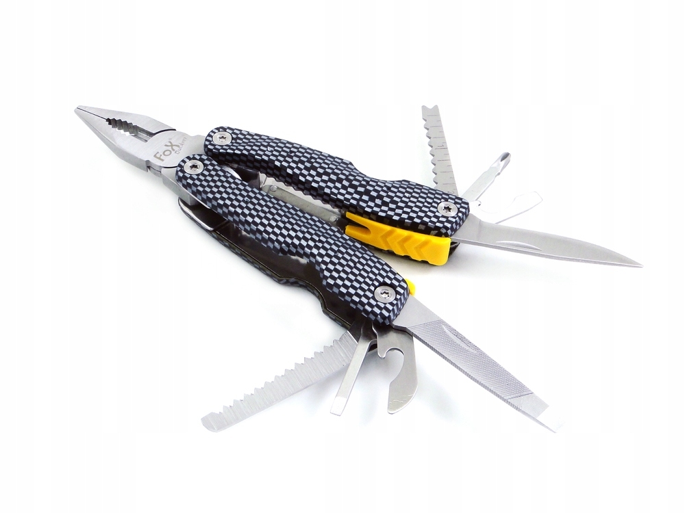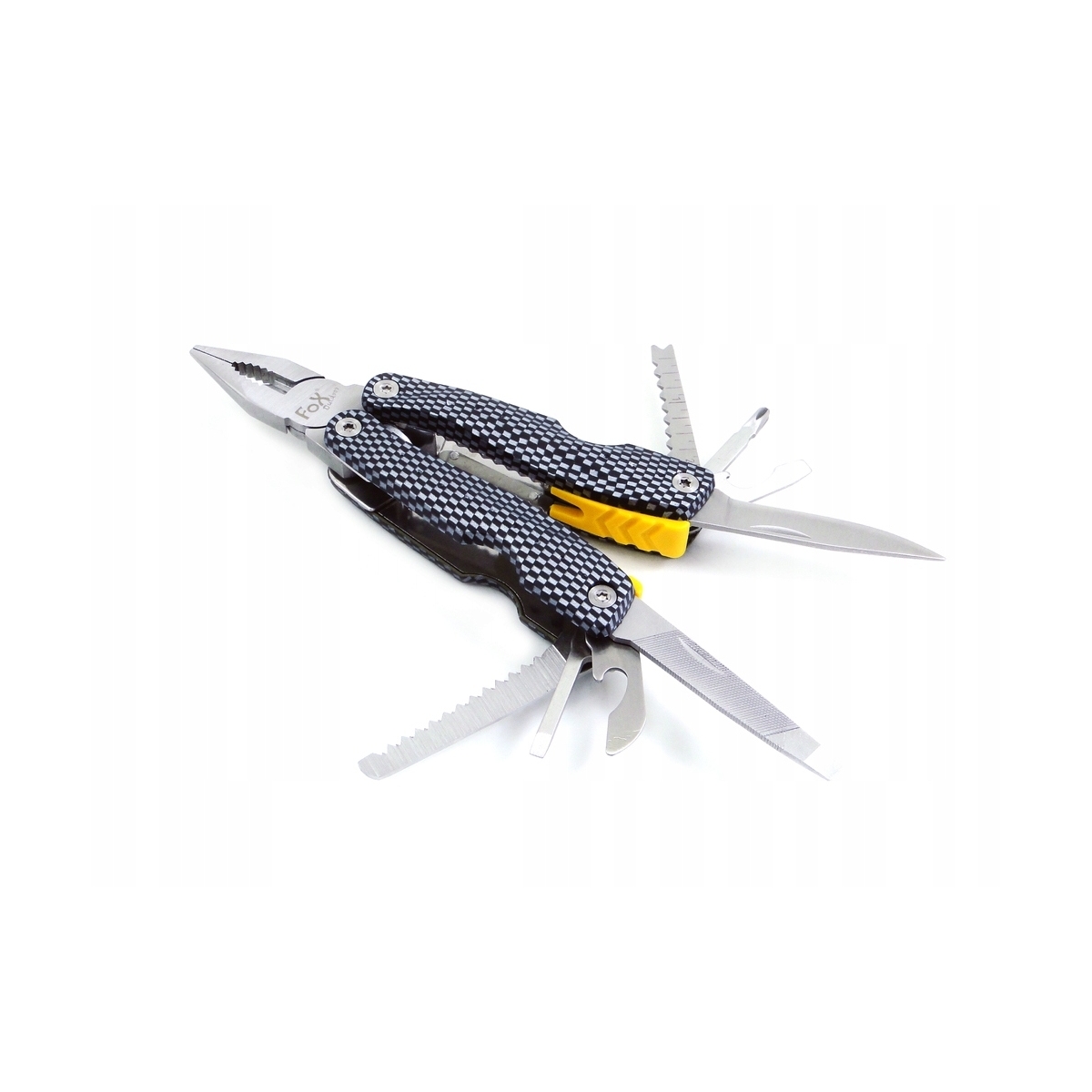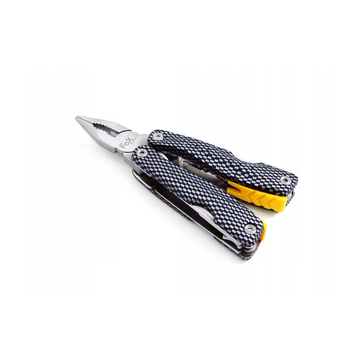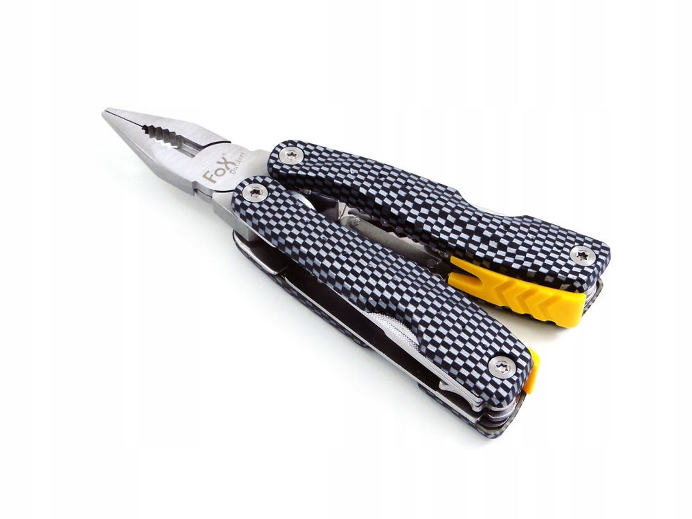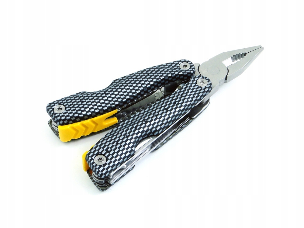 Multitool 9 funkcyjny z pokrowcem Fisherman karbon - .model który przyda się do drobnych napraw, prac terenowych, a także do codziennych czynności (EDC). Wykonany ze stali nierdzewnej, okładziny rękojeści z tworzywa w kolorze "karbon".
