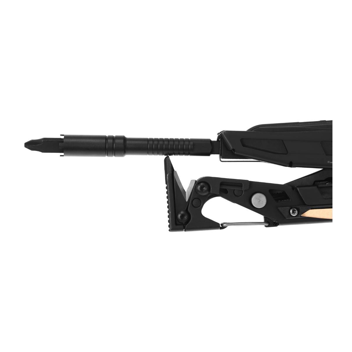 Korpus multitoola ma zwartą formę, a wszystkie narzędzia są łatwo dostępne — zarówno do prac codziennych, jak i specjalistycznych operacji. Dzięki kompaktowym wymiarom i kaburze zgodnej z systemem MOLLE, MUT EOD można wygodnie przenosić przy wyposażeniu taktycznym lub EDC.