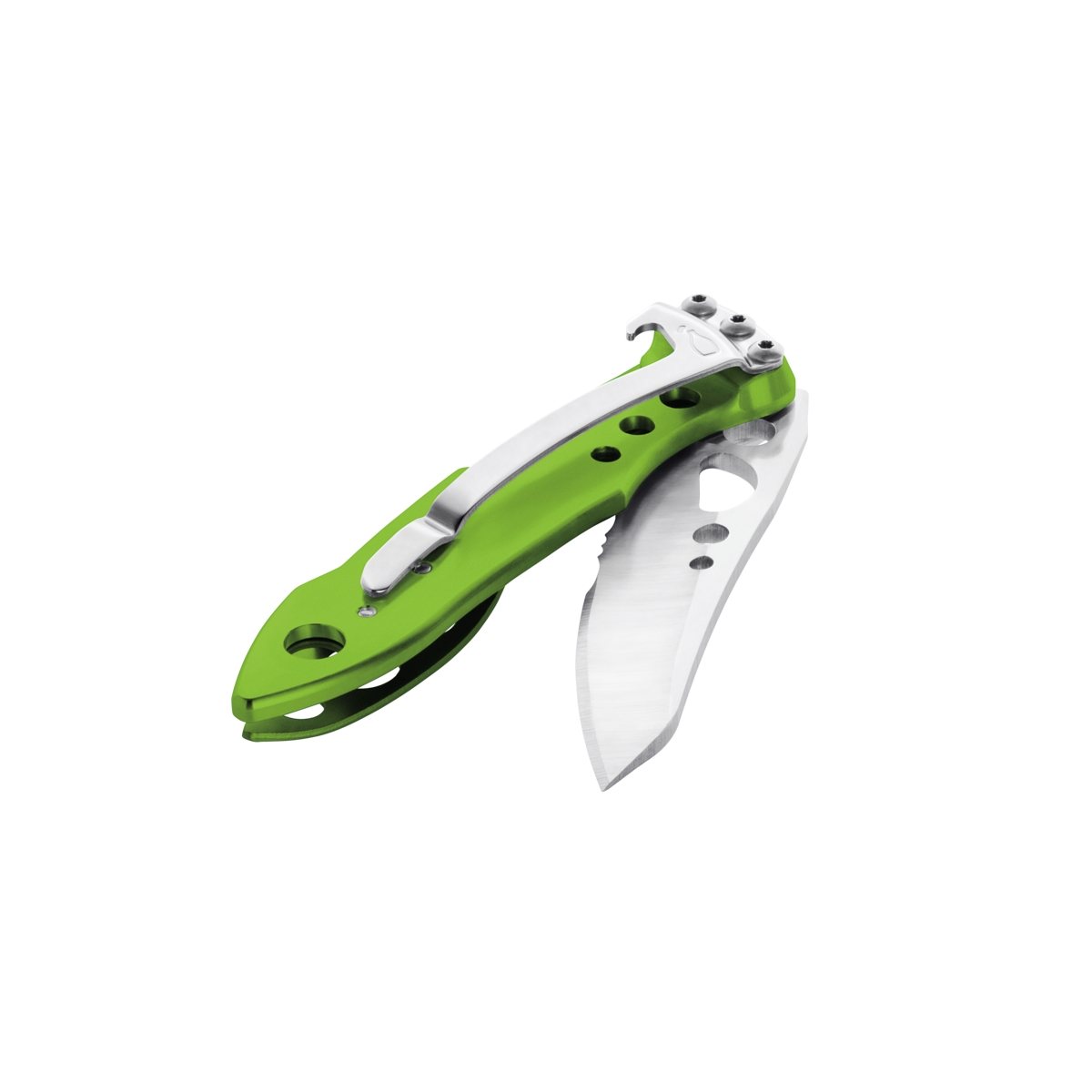 Nóż składany Leatherman Skeletool KBX (832384) - kolor zielony, stal 420HC, Liner Lock, clip point, ostrze częściowo ząbkowane