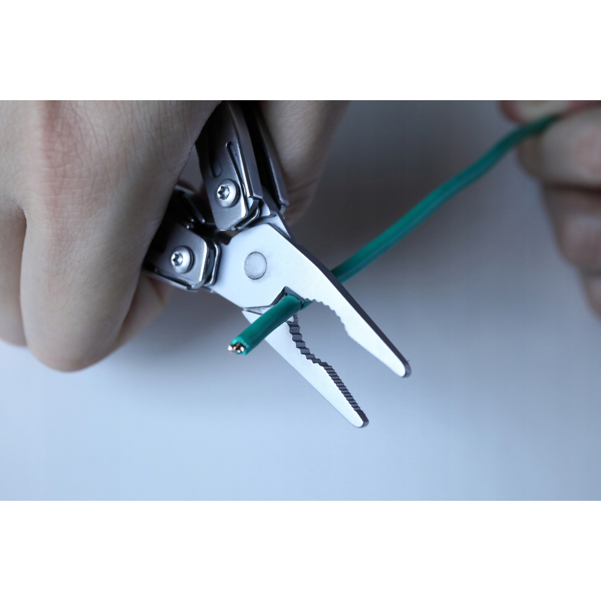 Łącznie w multitoolu dostępnych jest 10 różnych narzędzi, w tym nożyczki, pilniczek, ostrze oraz przecinak do drutu.