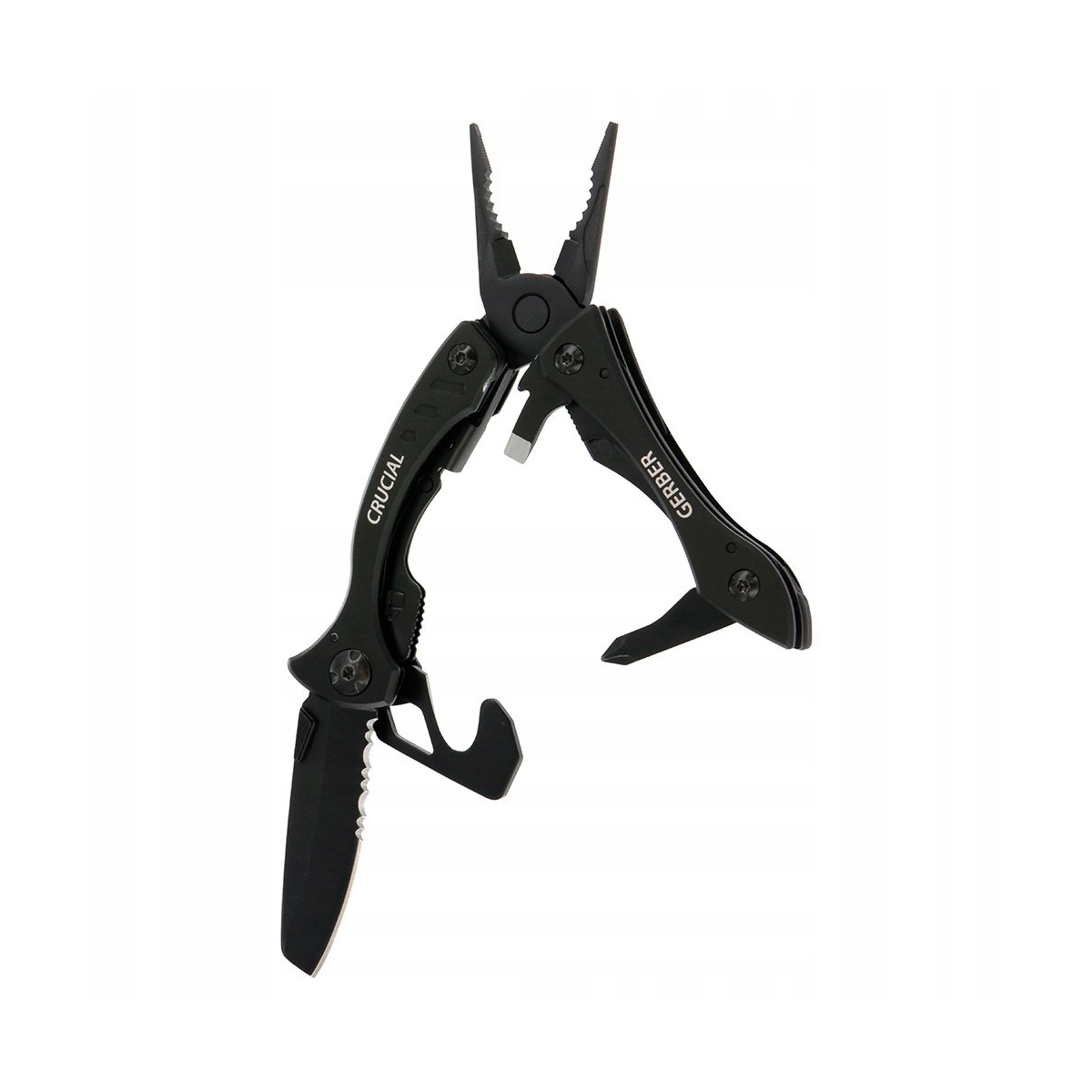 Narzędzia które posiada Gerber Crucial zostały wykonane ze stali nierdzewnej a jego rękojeść z aluminium. Jednym z najważniejszych funkcji multitool'a marki Gerber jest blokowane ostrze typu combo. Ostrze jest częściowo ząbkowane co przydaje się szczególnie podczas cięcia materiałów włóknistych. Kombinerki również posiadają ostrze do cięcia drutu. Multitool otwiera się w podobny sposób do noży motylkowych, dzięki czemu dostęp do wszystkich narzędzi jest szybki i łatwy. Profil rękojeści sprawia, że Gerber Crucial doskonale leży w dłoni oraz nie zajmuje wiele miejsca podczas przenoszenia w kieszeni. Starannie wyselekcjonowane narzędzia w które został wyposażony doskonale sprawdzają się w każdej sytuacji.