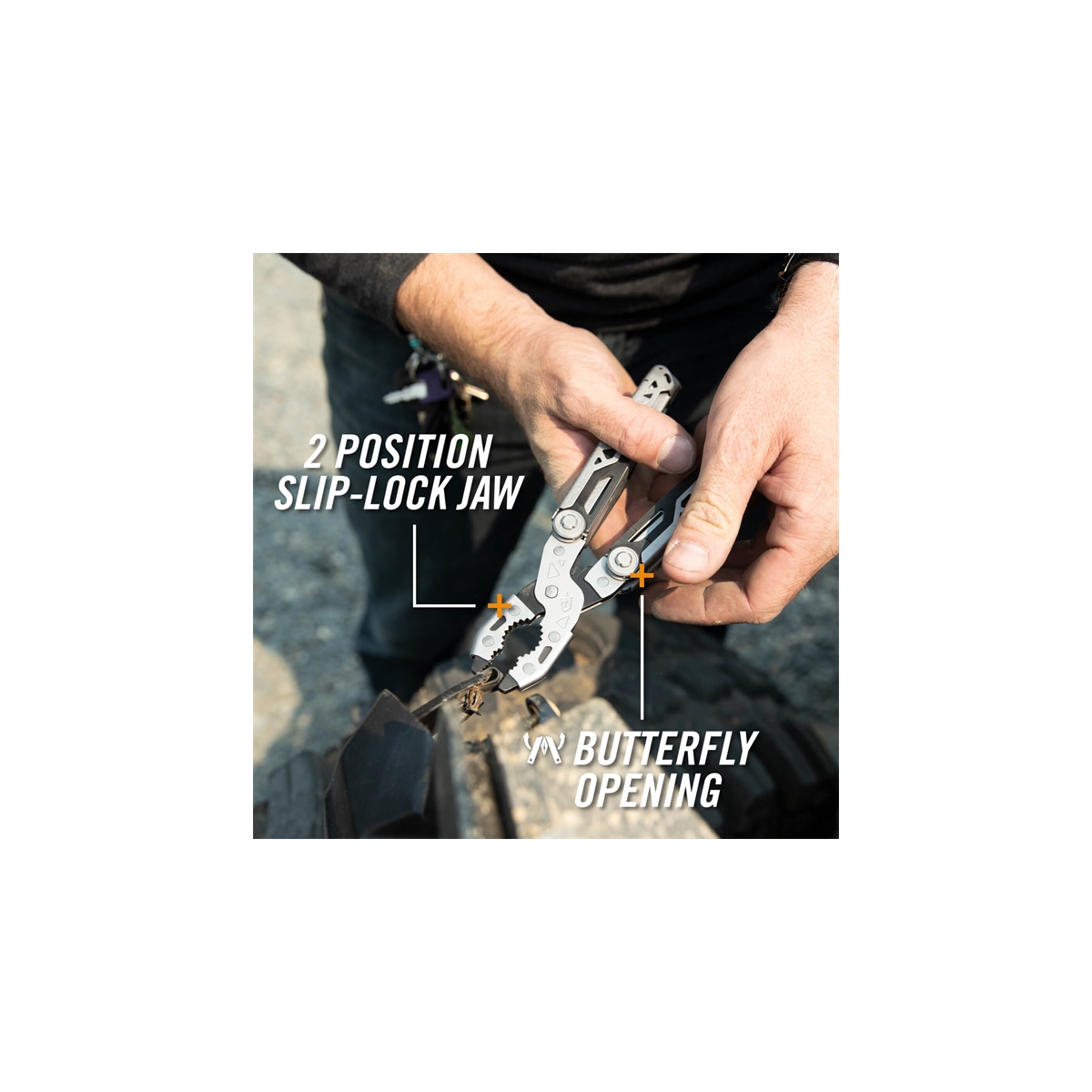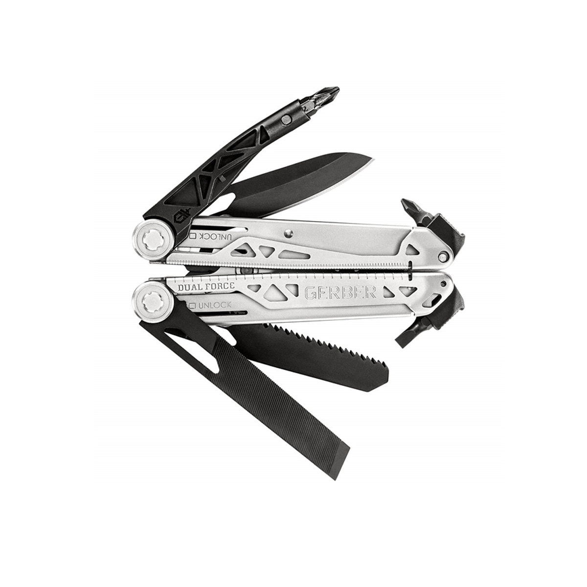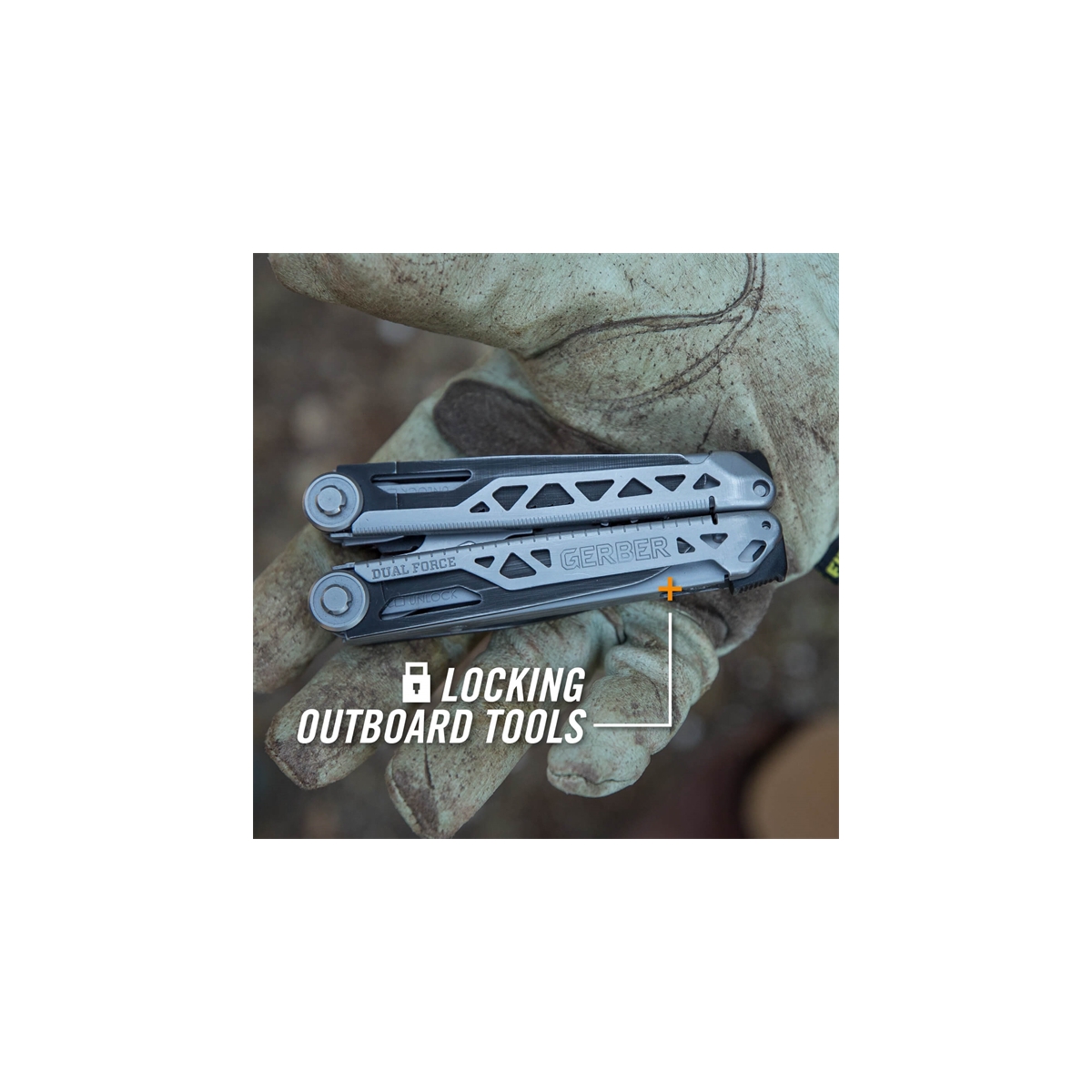 W przypadku ciężkich zadań czasem łatwiej wrócić do skrzynki z narzędziami i wybrać odpowiednio mocne szczypce. Aż do teraz. Gerber Dual-Force posiada parę wzmocnionych szczypiec, które dzięki warstwowej budowie są jeszcze bardziej trwałe. Regulowana dwu-pozycyjna szczęka i bardzo duże zęby zapewnią pewny uchwyt i niezrównaną kontrolę.