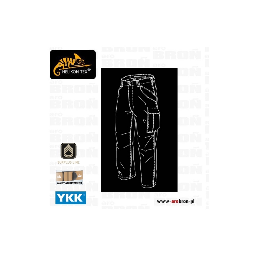 Spodnie Helikon M65 - to taktyczne bojówki wzorowane na legendarnych spodniach amerykańskiej armii. Podobnie jak oryginalne, uszyte zostały z bardzo wytrzymałego materiału NYCO składającego się z 50 % bawełny i 50 % nylonu o wysokiej gramaturze 315 gr/m2. Połączenie bawełny oraz nylonu sprawia, że spodnie są lekkie, a zarazem bardzo mocne i wytrzymałe. Dodatkowym atutem materiału jest jego szybkie schnięcie po zmoczeniu.