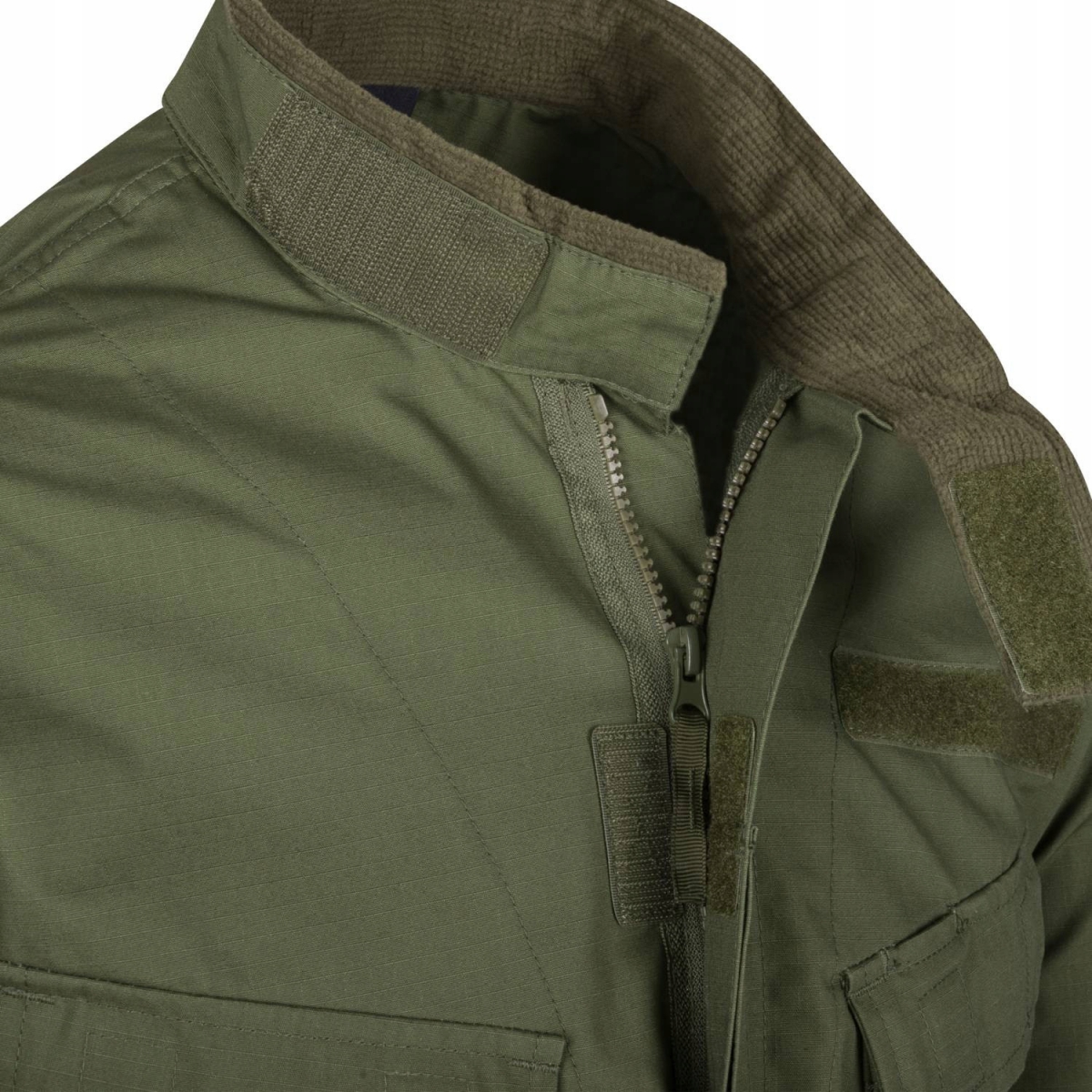 Bluza posiada kołnierz ze stójką podszytą polarem który chroni szyję przed otarciami podczas noszenia kamizelek taktycznych lub przeciw odłamkowych. Zapinana jest dwukierunkowym zamkiem co ułatwia dostęp do przenoszonego na pasie ekwipunku. Otwory wentylacyjne są łatwo dostępne dla użytkownika nawet po mimo noszenia plecaka lub kamizelki.
