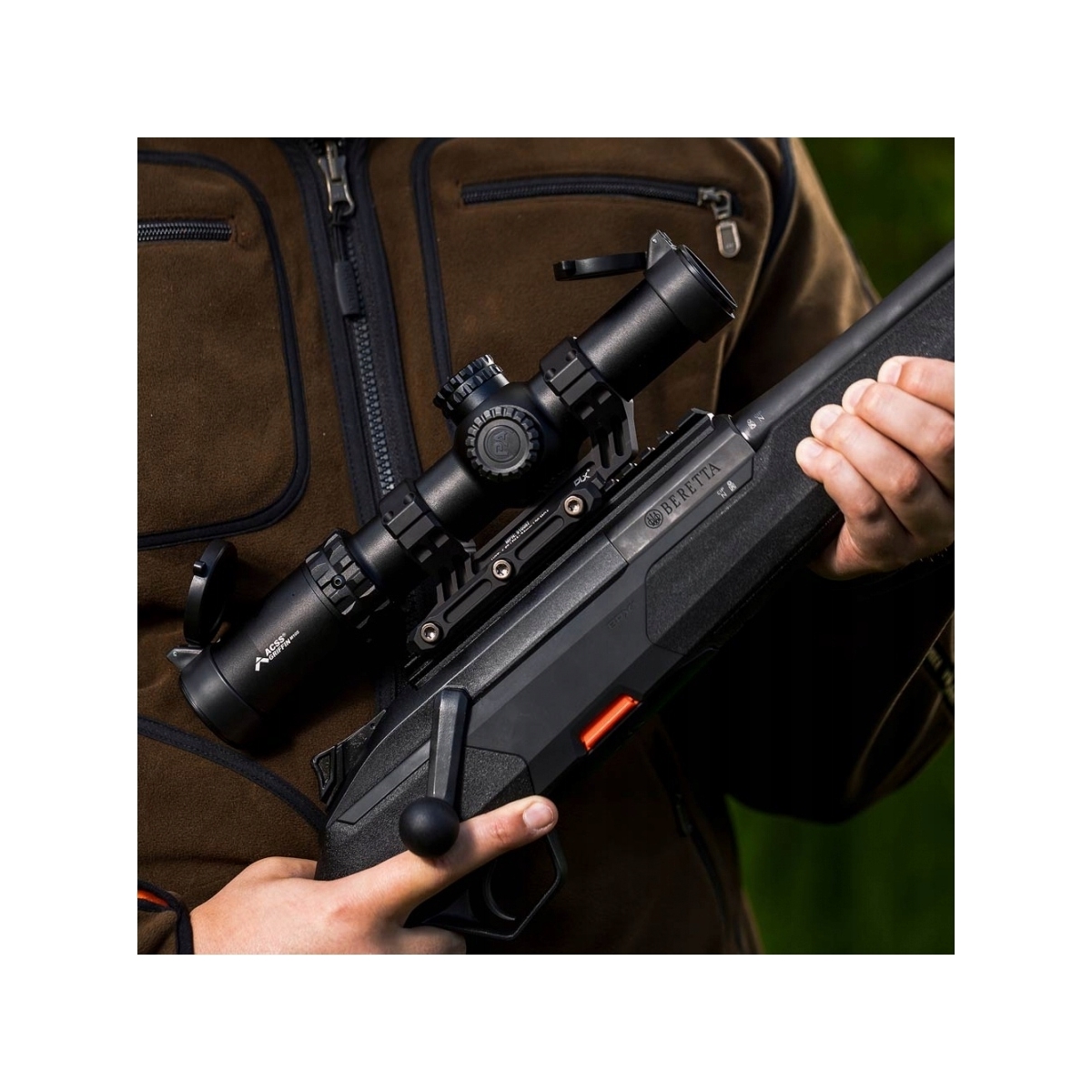 Primary Arms SLx 1-10 × 28 SFP - to wszechstronne narzędzie optyczne LPVO z podświetlaną siatką celowniczą ACSS Griffin M10S w drugim planie, niską wagą oraz niewielkimi gabarytami, dostosowana do wymogów dynamicznego strzelania na krótkich i średnich dystansach. Zapewnia precyzję strzałów w różnorodnych warunkach pogodowych.