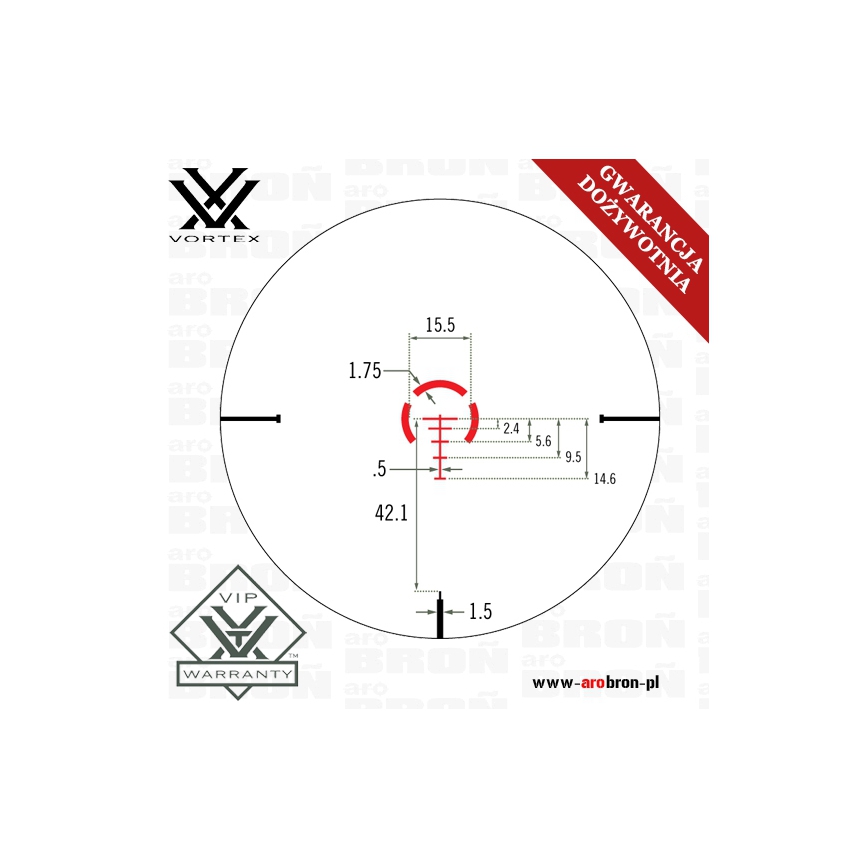 Lornetka VORTEX Strike Eagle 1-6x24 - to luneta celownicza która oferuje nam wszechstronność i szybkość celowania. Luneta idealnie sprawdza się na małych i średnich dystansach. Niesamowicie wyrazisty obraz pozwala na dokładne celowanie do statycznych i ruchomych celów. Dodatkowo błyskawiczne ostrzenie oraz ulepszone zerowanie wieżyczek MOA zapewnia optymalny komfort użytkowania. Luneta wykonana w całości z anodyzowanego duraluminium oraz posiada tubus jednoczęściowy, dzięki czemu jest niezwykle odporna na uszkodzenia i praktycznie niewrażliwa na odrzut broni. Wypełnienie azotem sprawia, że jest ona całkowicie odporna na zaparowywanie, a szczelna konstrukcja zapewnia jej wodoodporność.