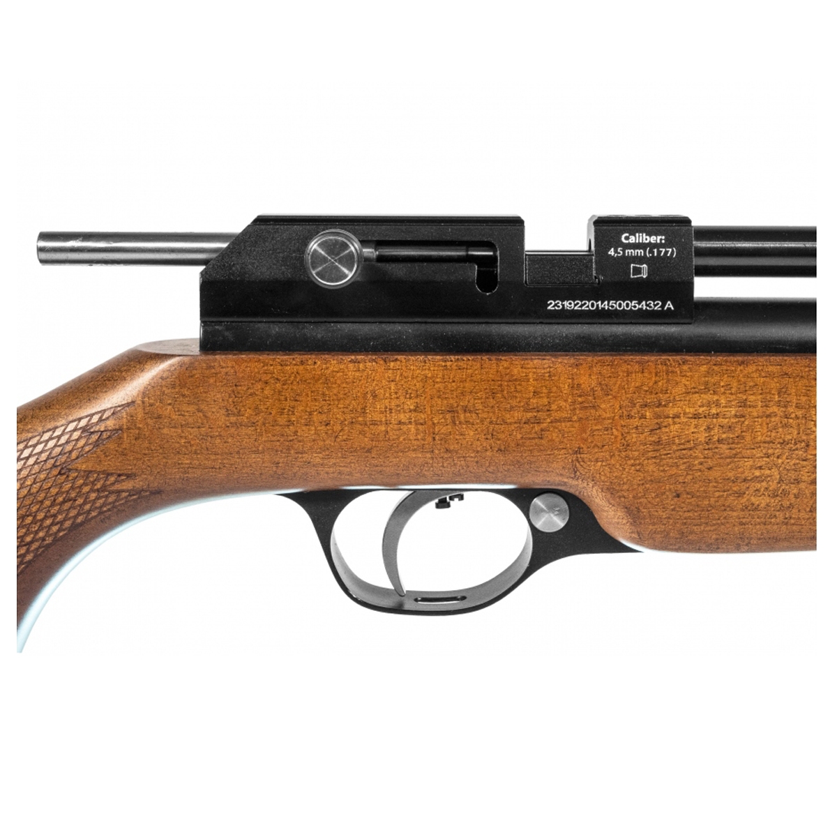 Na zakończeniu lufy znajduje się tłumik dźwięku obniżający odgłos wystrzału oraz pełniący rolę bazy montażowej dla muszki. Po wsunięciu magazynka do zamka, zostaje on zabezpieczony magnetycznie. Do przeładowania śrutu służy boczna dźwignia. Repetowanie odbywa się płynnie i szybko. Kolba Monte Carlo z wysoką baką policzkową umożliwia korzystanie z dowolnych celowników optycznych oraz zapewnia wygodny skład osobom prawo i leworęcznym. Na zakończeniu kolby znajduje się miękka gumowa stopka, która pozwala na wygodne i stabilne oparcie karabinka o ramię.