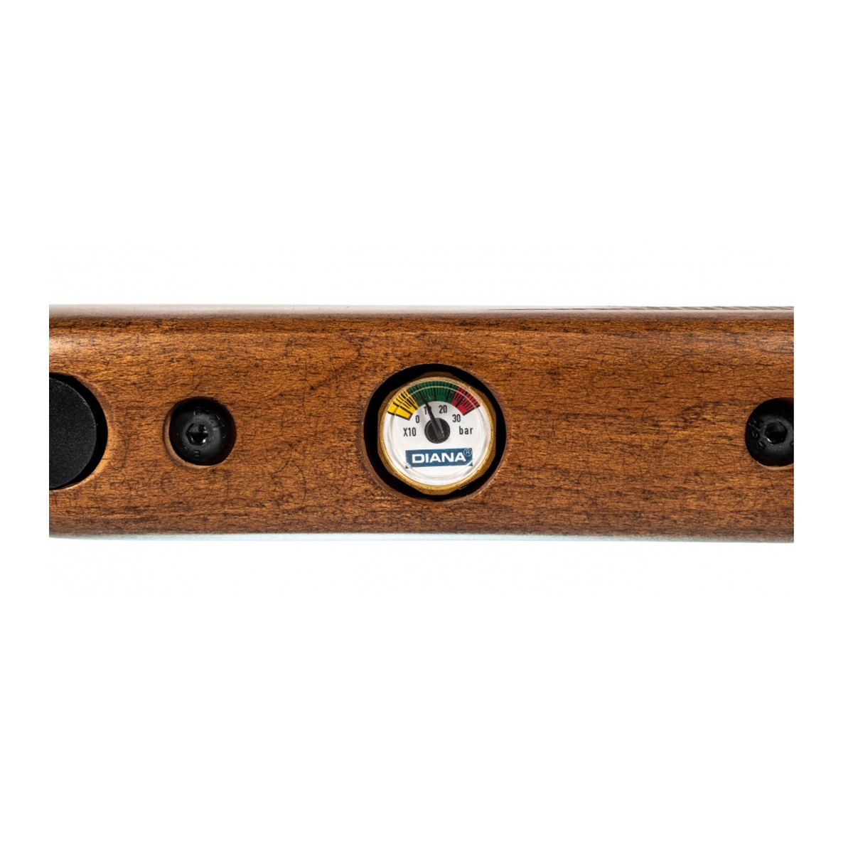 - Zintegrowany manometr służy do odczytu ciśnienia w kartuszu.