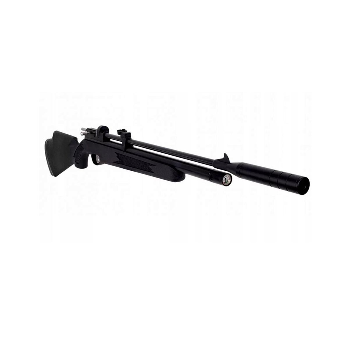 - Wiatrówka zasilana na sprężone powietrze PCP ze zbiornika umieszczonego pod lufą w osadzie karabinu. Napełnienie wiatrówki możliwe jest, dzięki specjalne pompce lub butli z przetoczką (urządzenia te należy dokupić osobno).