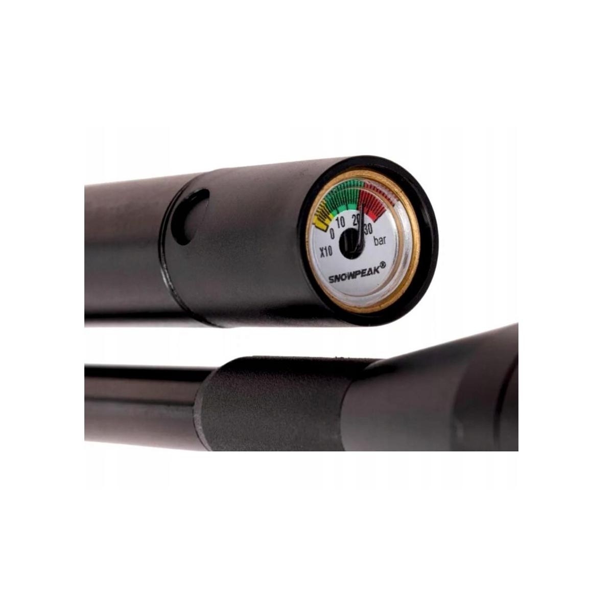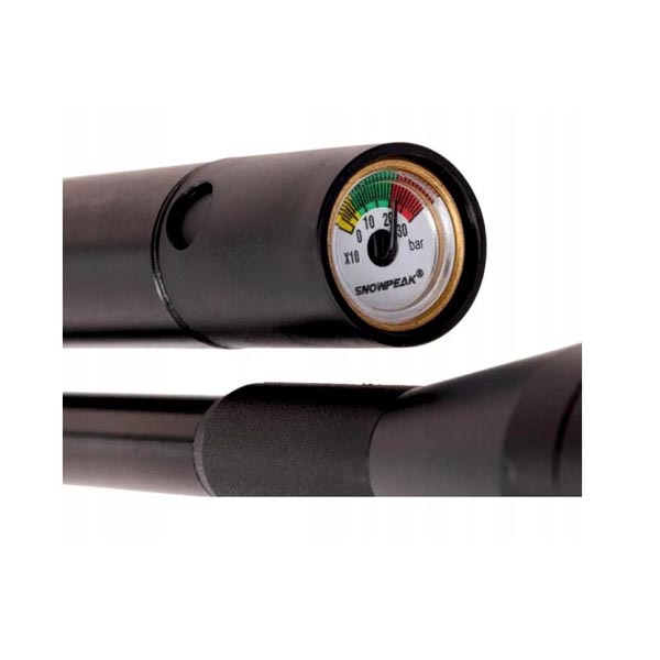 - Posiada wbudowany manometr, który pozwala na bieżąco śledzić ciśnienie w kartuszu.