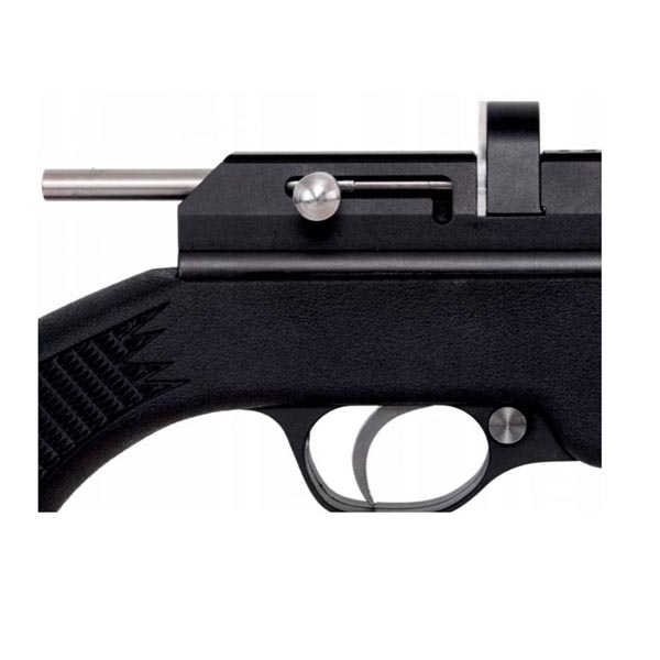 - Wiatrówka posiada przesuwny bezpiecznik umieszczony na osłonie spustu, który chroni przed oddaniem niekontrolowanego wystrzału.