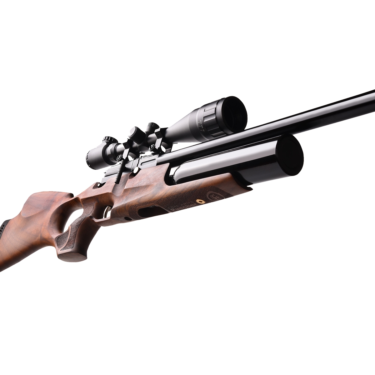 - Wiatrówka PCP wyposażona w kartusz aluminiowy o pojemności 425 cc.