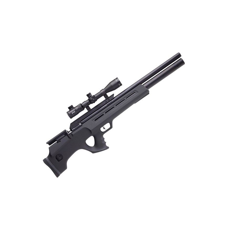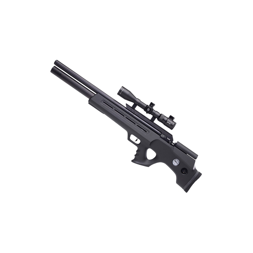 - Wiatrówka PCP o konstrukcji bezkolbowej bullpup na śrut diabolo 7,62mm.