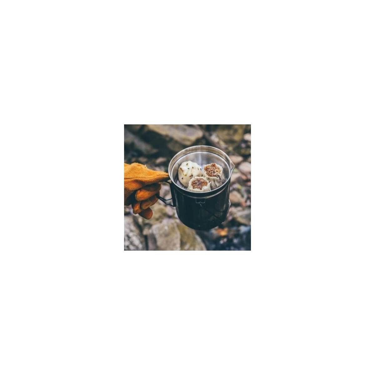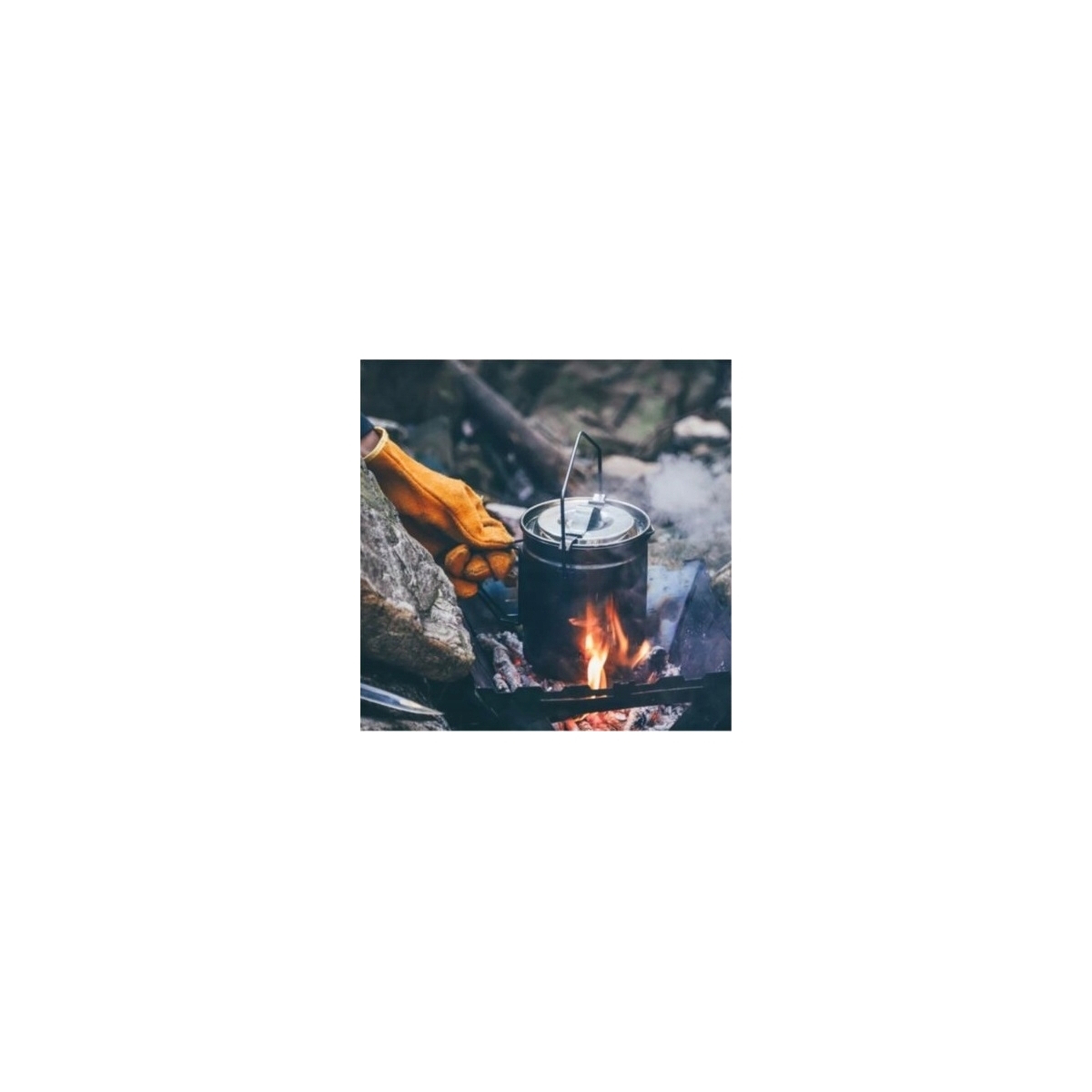 - Daje możliwość użytkowania na kuchence turystycznej lub bezpośrednio na ogniu.
