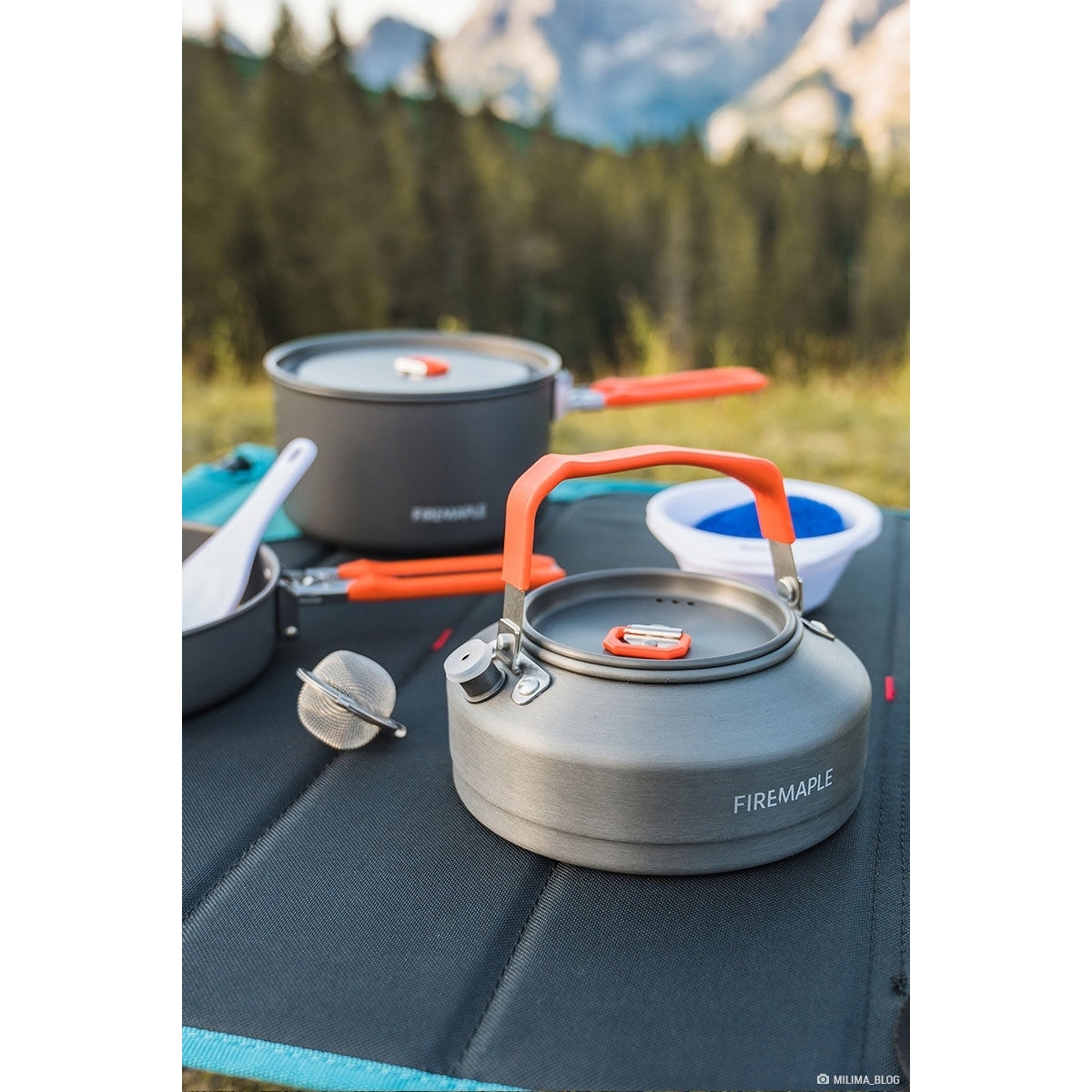Zestaw naczyń FIRE-MAPLE FEAST 2 - to kompaktowy zestaw z którym można sobie urządzić naprawdę wygodną kuchnię. Wariant Feast 2 to spory garnek o pojemności 1,5 l, praktyczna patelnia z karbowanym dnem, do którego nie przywierają potrawy, a także czajnik do błyskawicznego przyrządzania gorącej herbaty albo krzepiącej kawy.